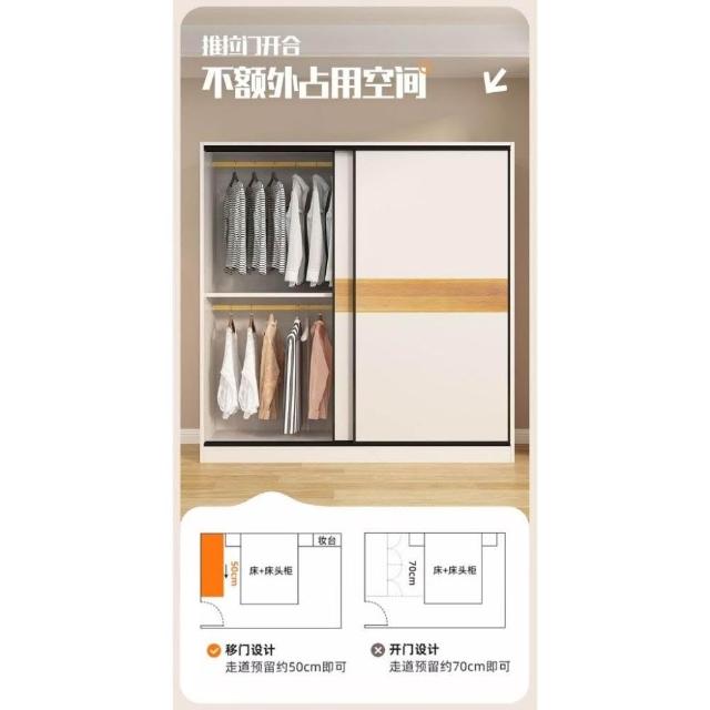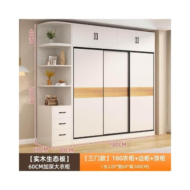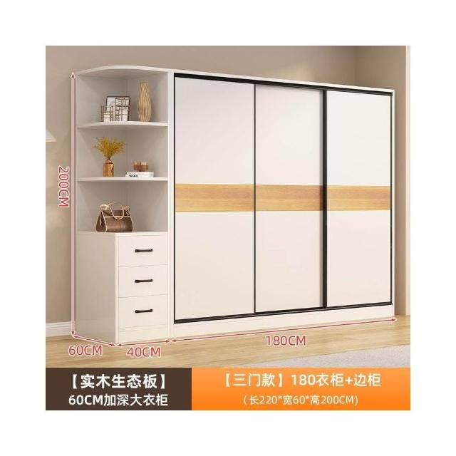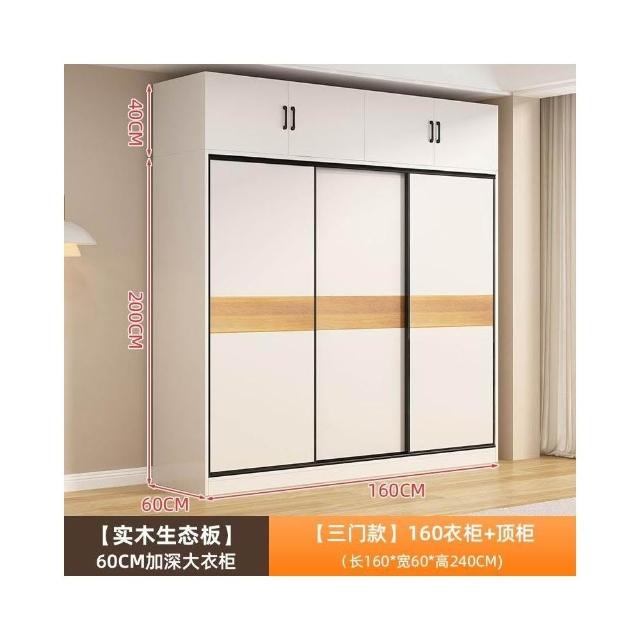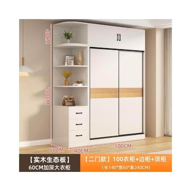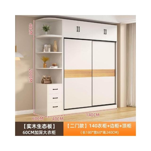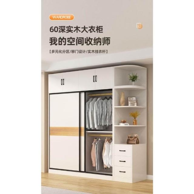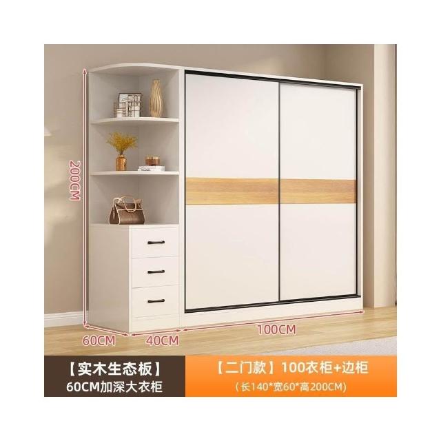 杉木全實木衣櫃 家用臥室衣櫥櫃 生態板推拉門櫃 多層收納衣櫃 儲物衣櫥櫃 大容量衣櫃 滑門置物衣櫃