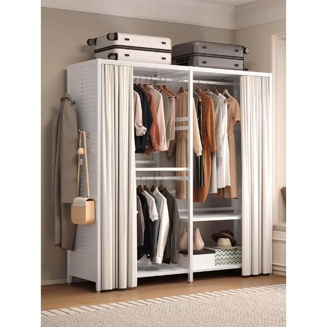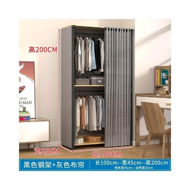 衣櫃家用簡易防塵布衣櫃鋼木組合衣架臥室出租房加厚收納櫃掛衣櫥