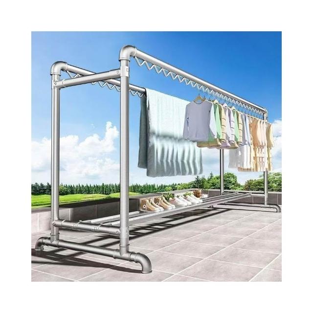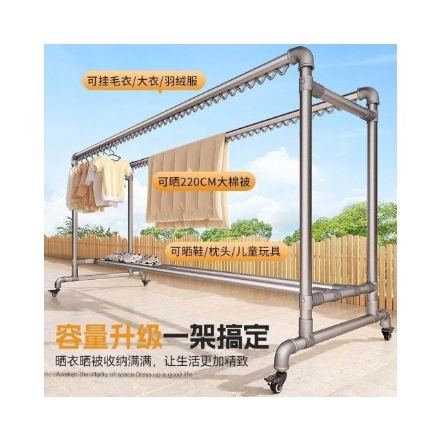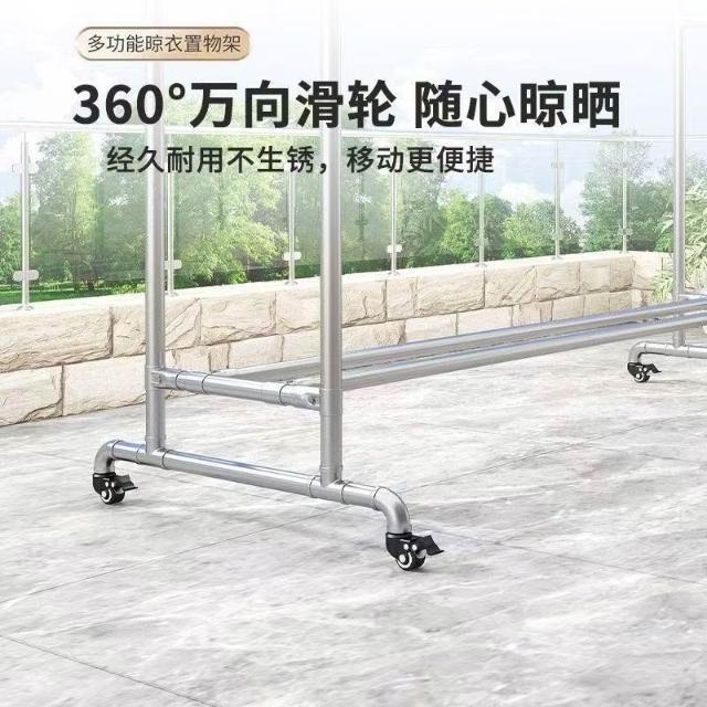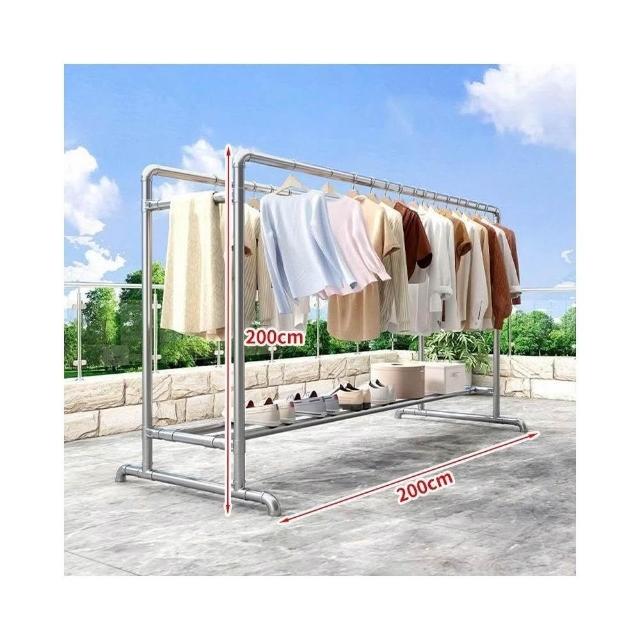 加粗鍍鋅鋼管晾衣架落地家用陽臺晾衣架室外戶外臥室簡易水管防風