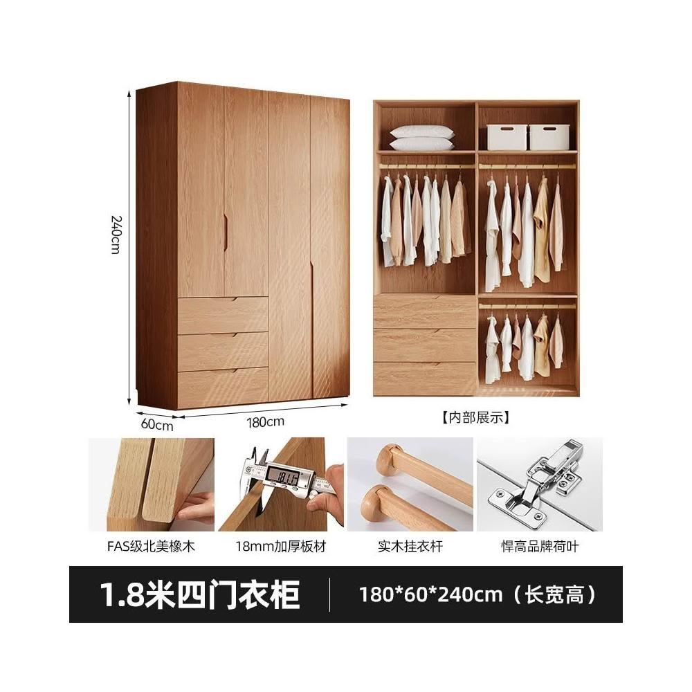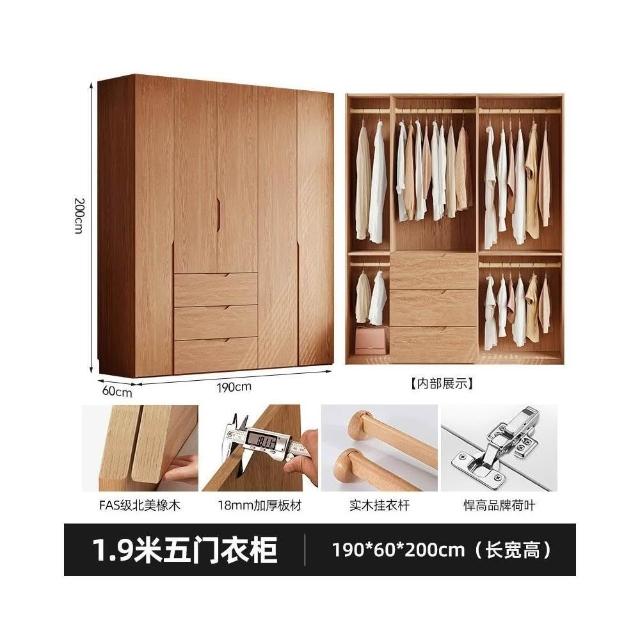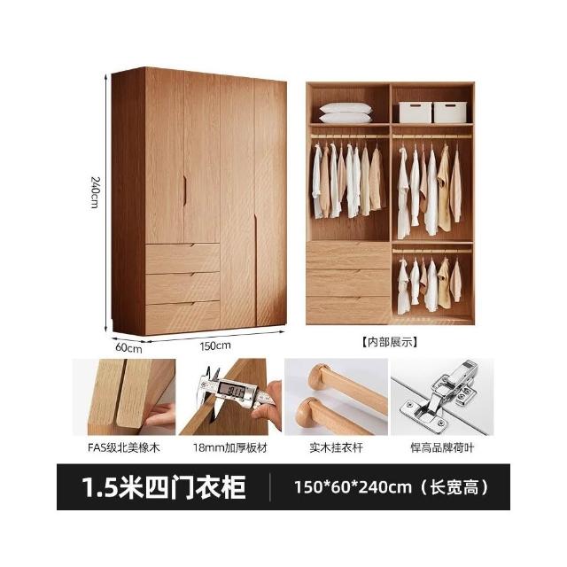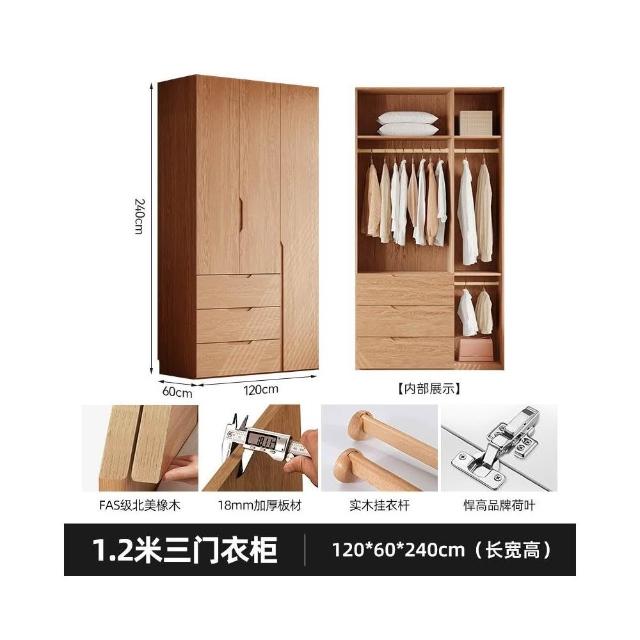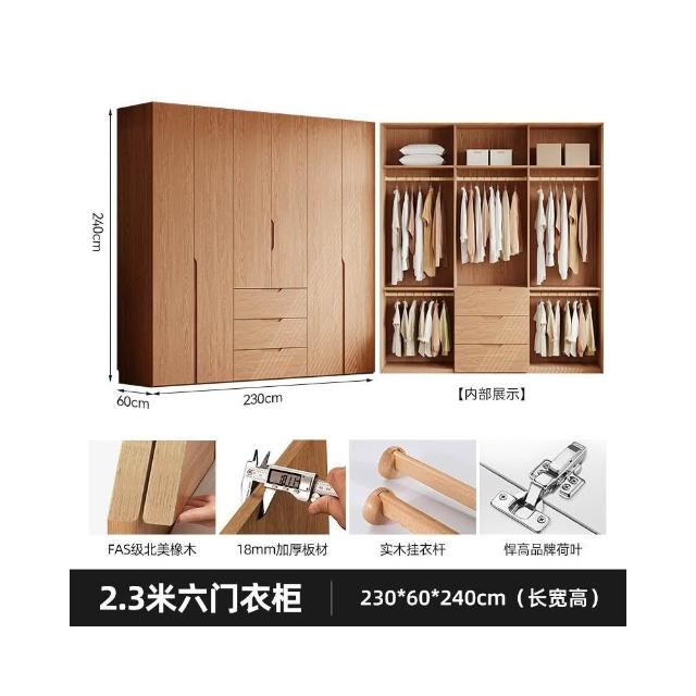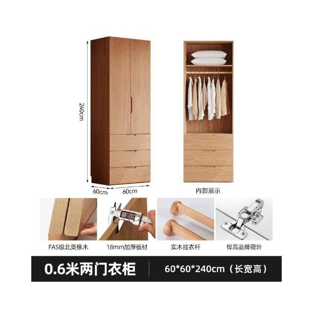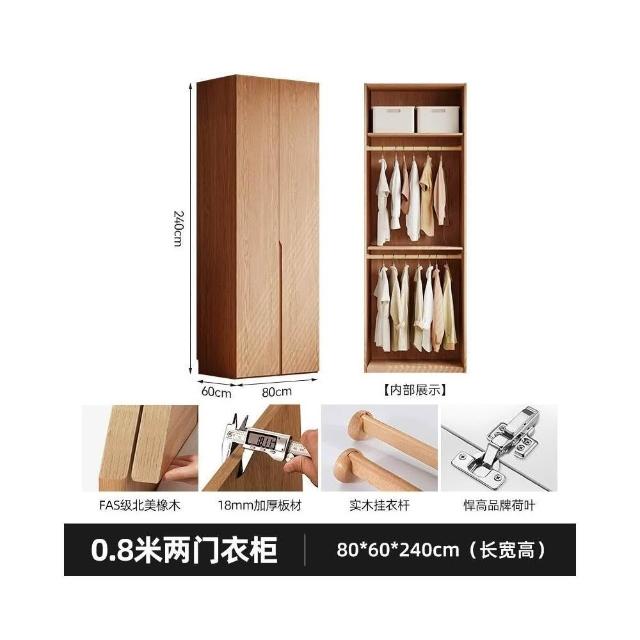 全實木橡木衣櫃臥室家用現代簡約儲物櫃子北歐原木風小戶型衣櫥櫃