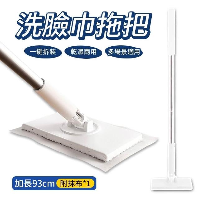 洗臉巾拖把 93cm加長款 含1抹布 1小夾子乾溼兩用 自動夾布拖把 平面拖把