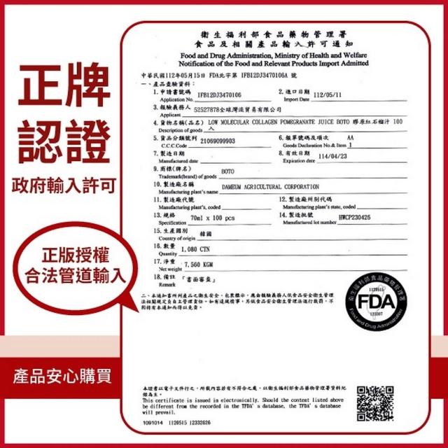 BOTO紅石榴膠原蛋白飲 70m 單包 紅石榴 石榴飲