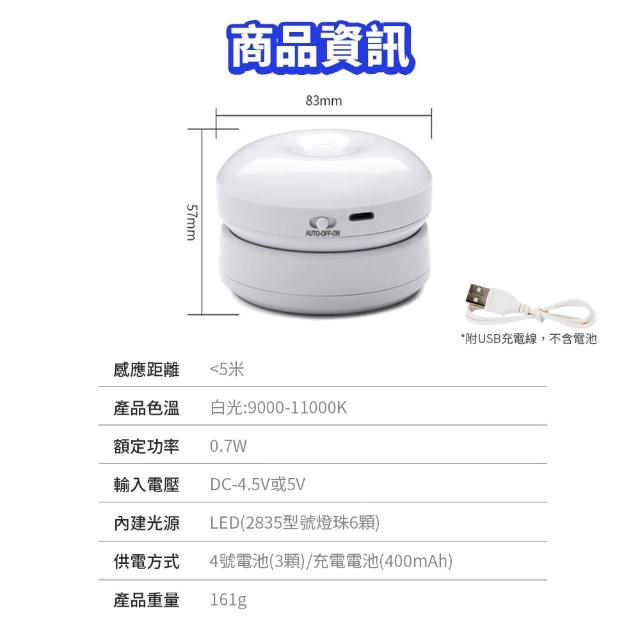 360度智能感應燈 小夜燈 磁吸式USB充電免打孔 USB充電/電池供電 走廊燈 櫥櫃燈