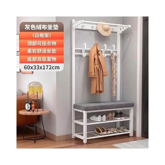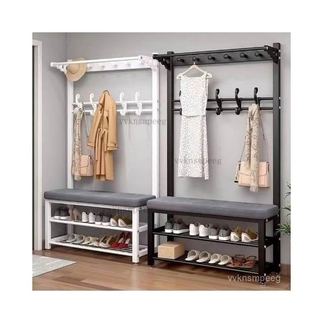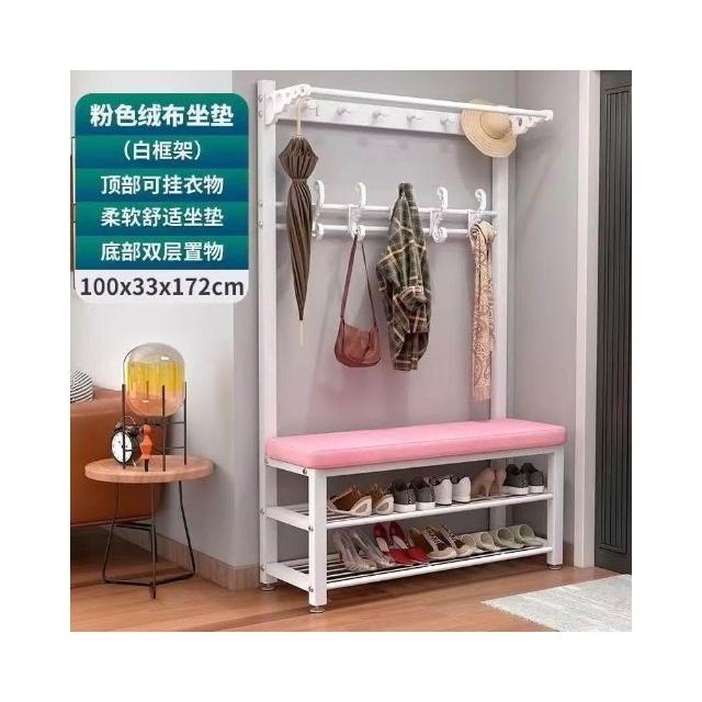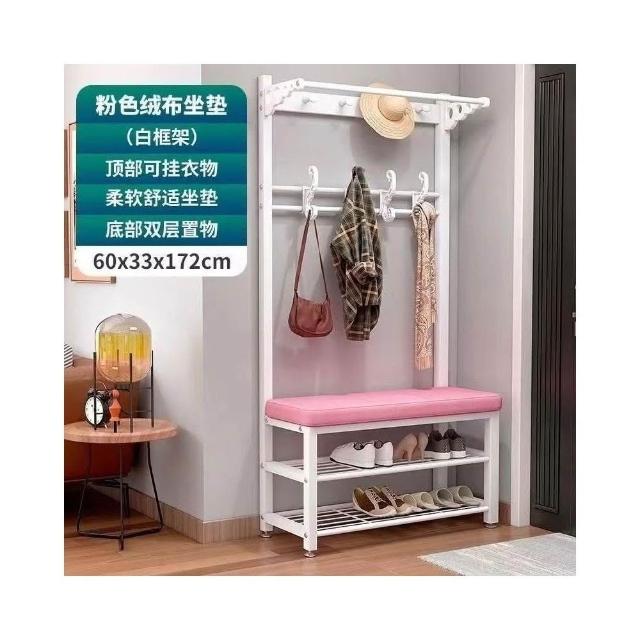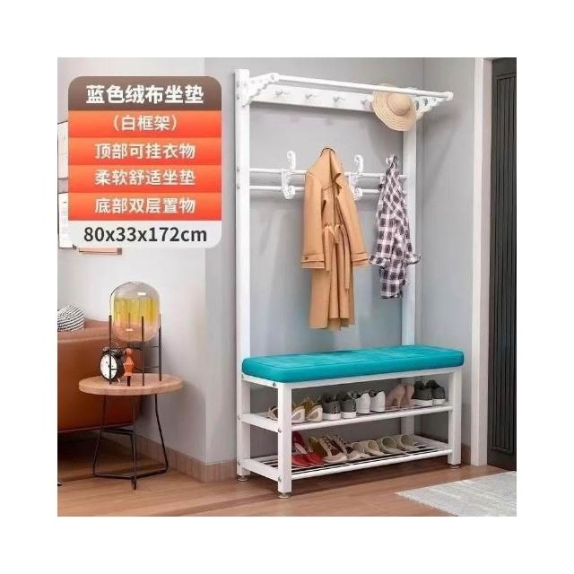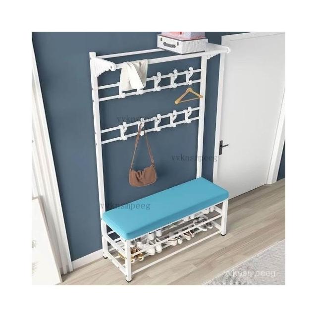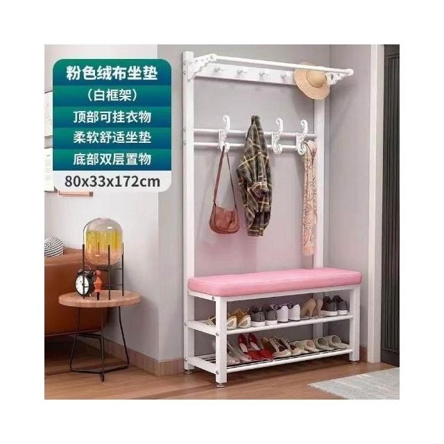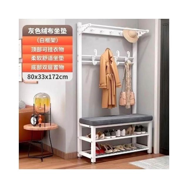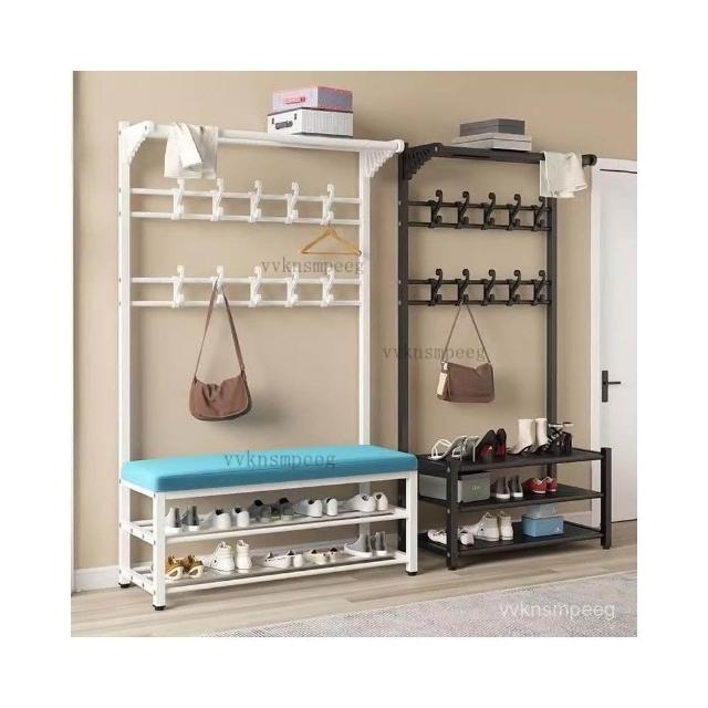 -特價 換鞋凳衣帽架落地臥室傢用多功能掛衣服架可坐簡易門口置物架鞋架掛衣架 吊衣架 簡易衣櫃 帽架 收納層架