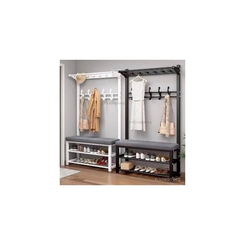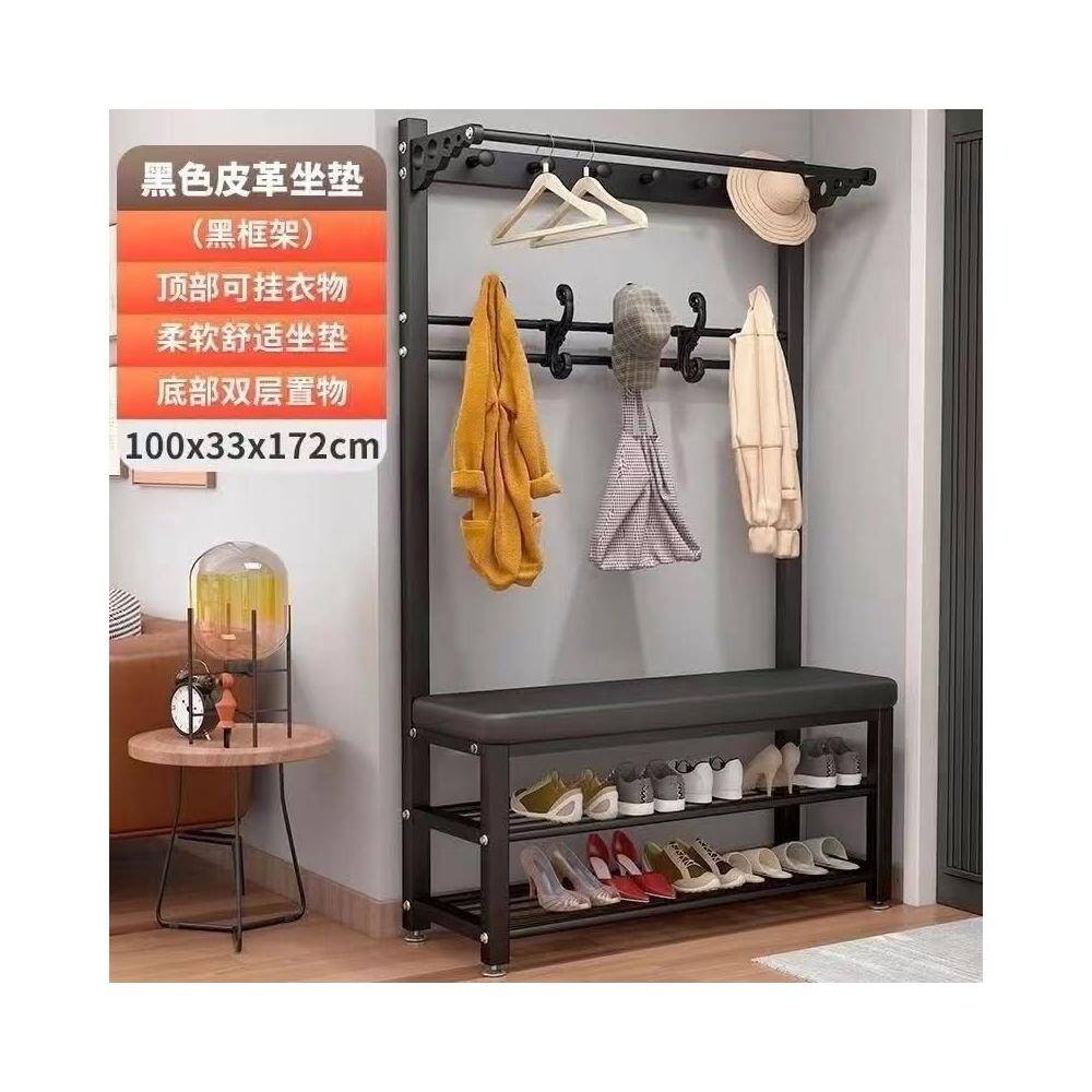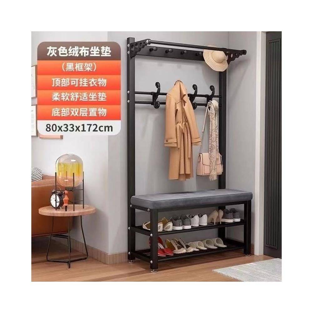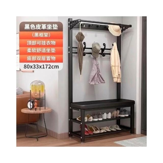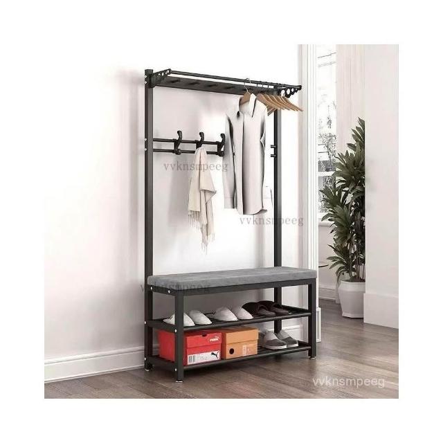 -特價 換鞋凳衣帽架落地臥室傢用多功能掛衣服架可坐簡易門口置物架鞋架掛衣架 吊衣架 簡易衣櫃 帽架 收納層架