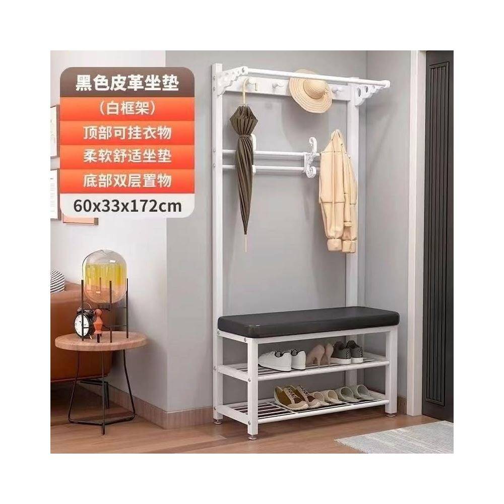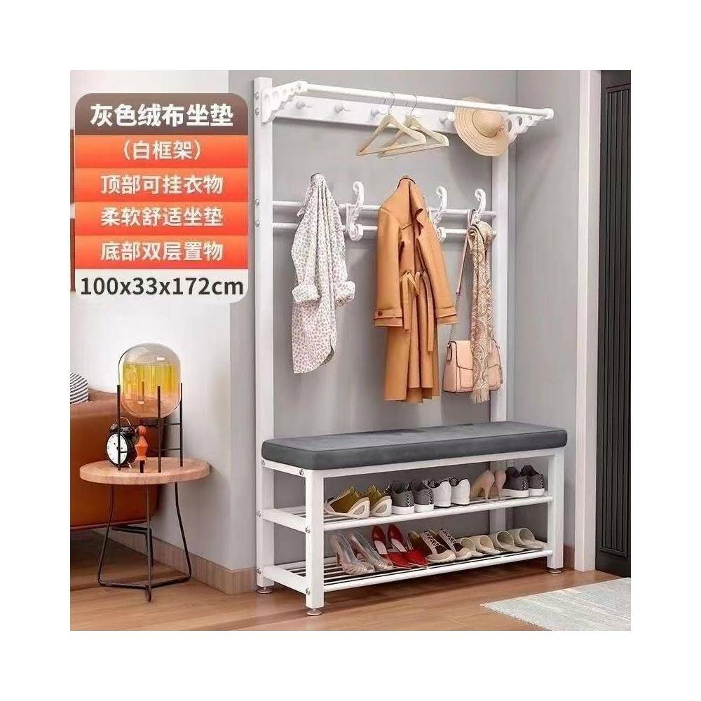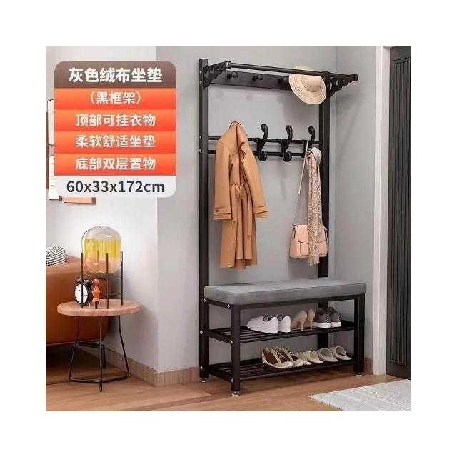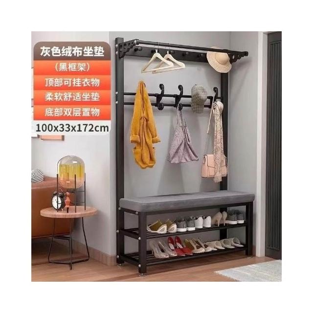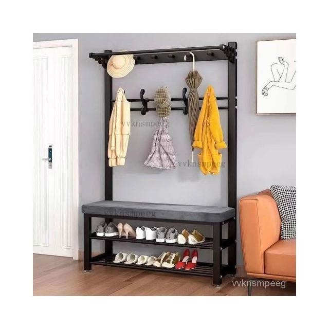 -特價 換鞋凳衣帽架落地臥室傢用多功能掛衣服架可坐簡易門口置物架鞋架掛衣架 吊衣架 簡易衣櫃 帽架 收納層架