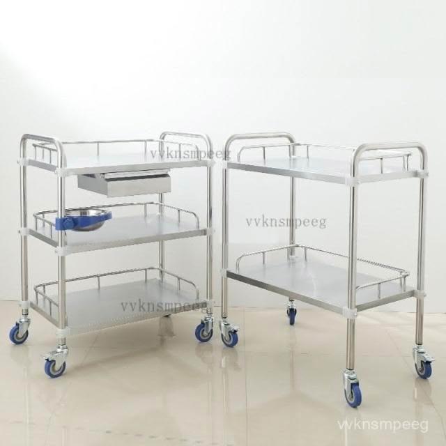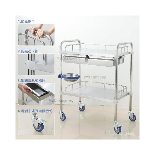 醫用推車不銹鋼治療車醫院置物架小推車美容院移動手推車收納 移動置物架 多功能推車 靜音輪推車打開卽用
