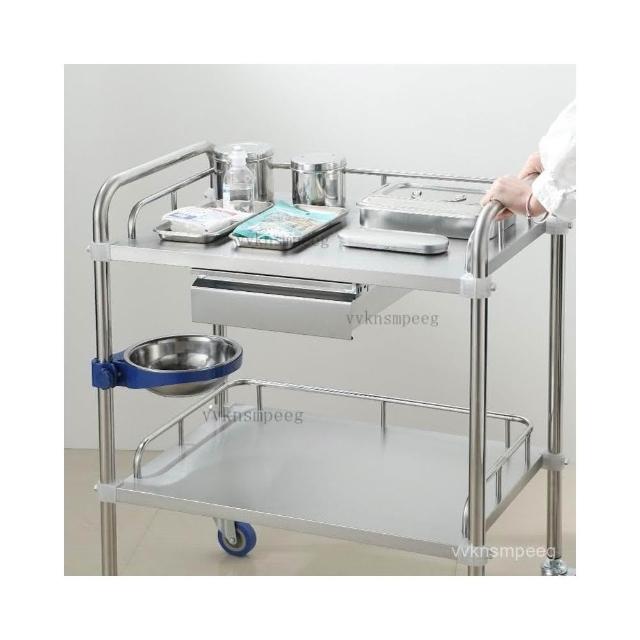 醫用推車不銹鋼治療車醫院置物架小推車美容院移動手推車收納 移動置物架 多功能推車 靜音輪推車打開卽用