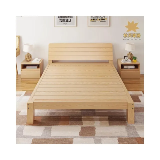 家居 實木床1.5米松木雙人床硬木板可定製1.8米出租房簡易單人1.2m床架