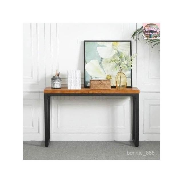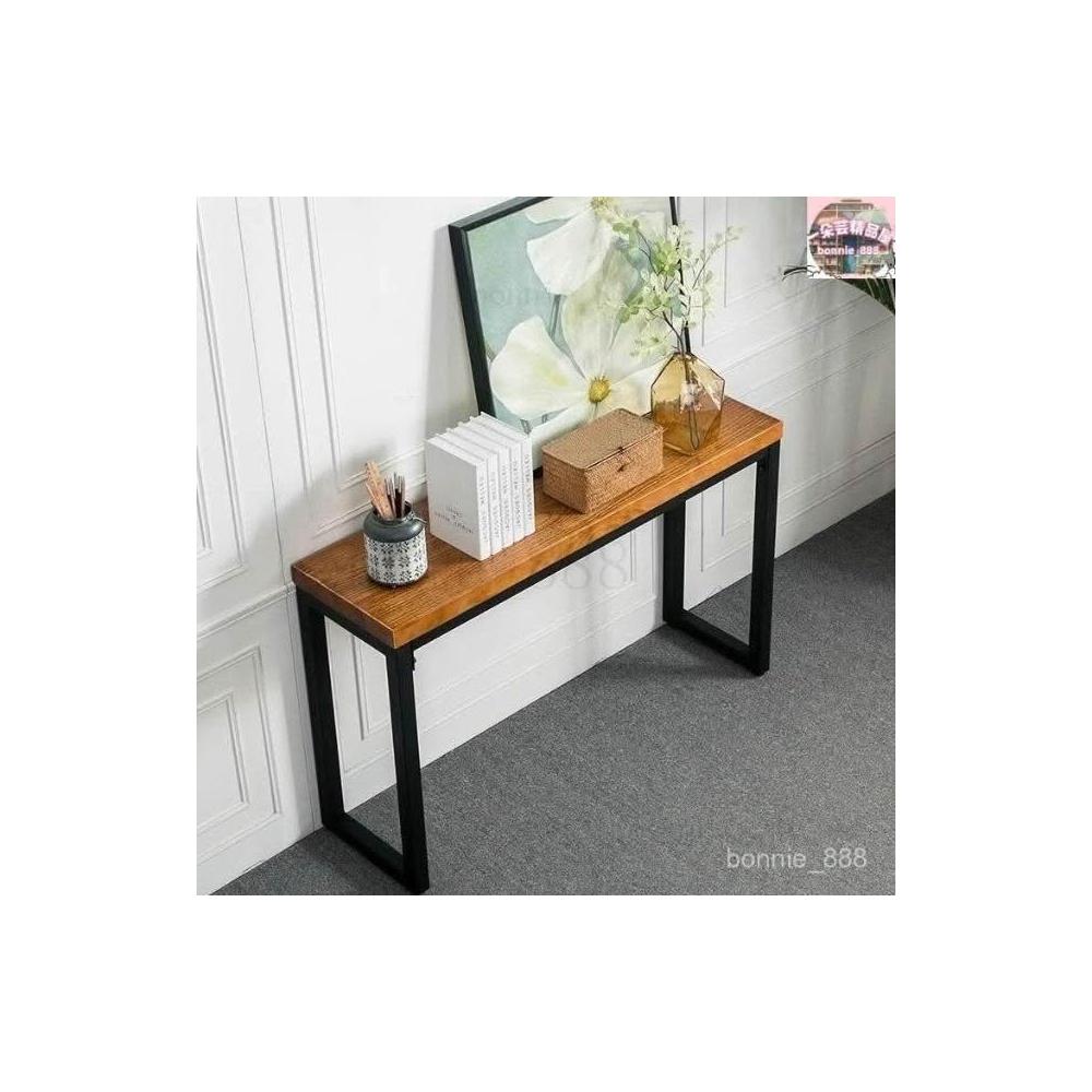 []~美式工業風複古實木鐵藝玄關桌極簡約供桌條幾案臺靠墻邊長條窄桌