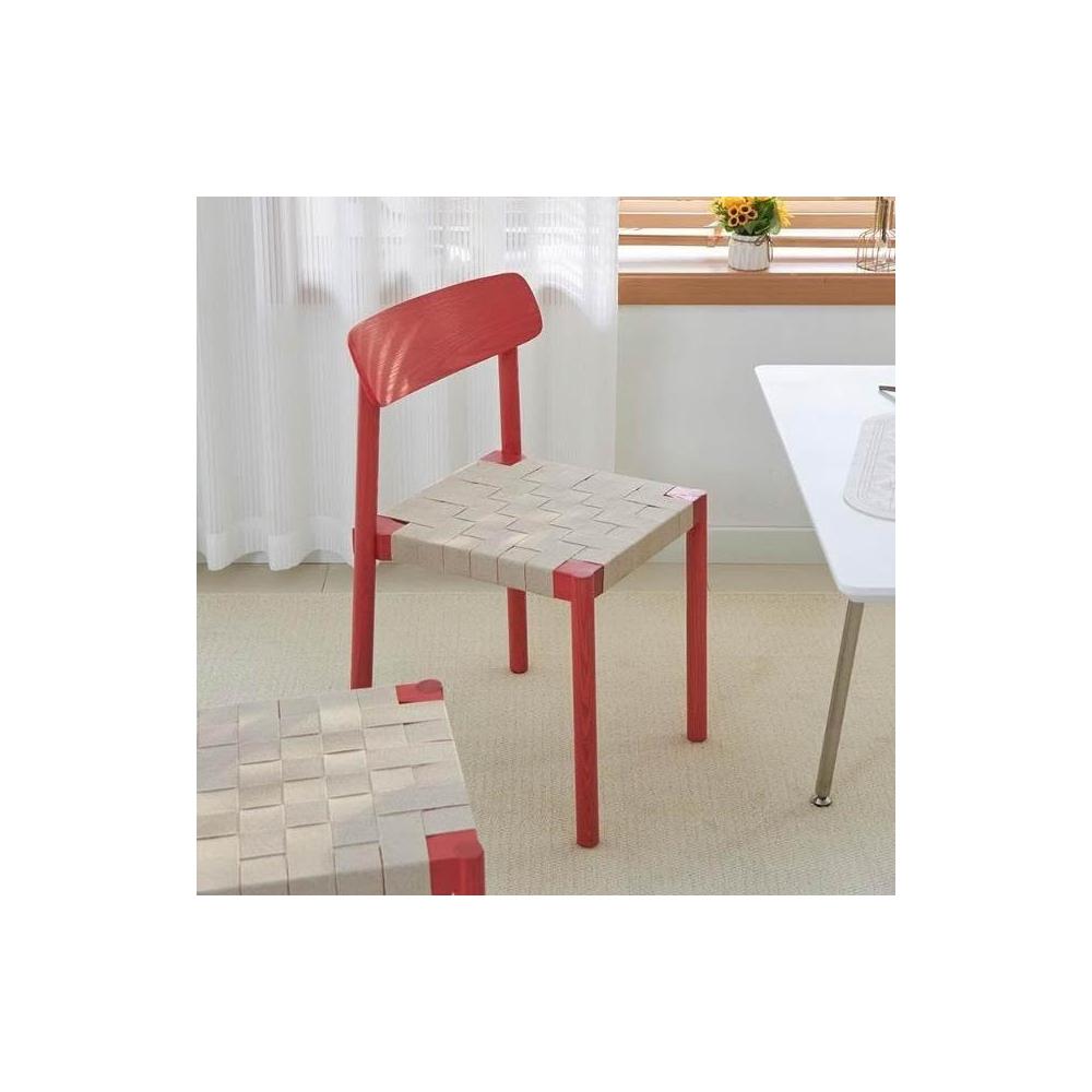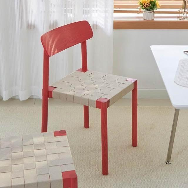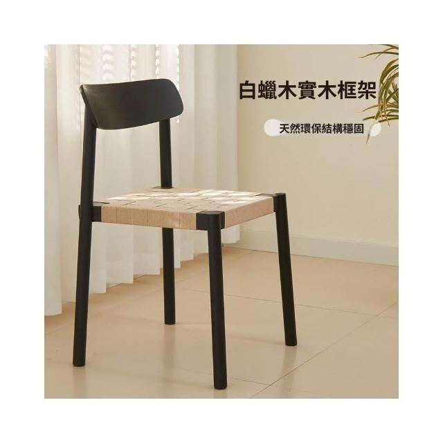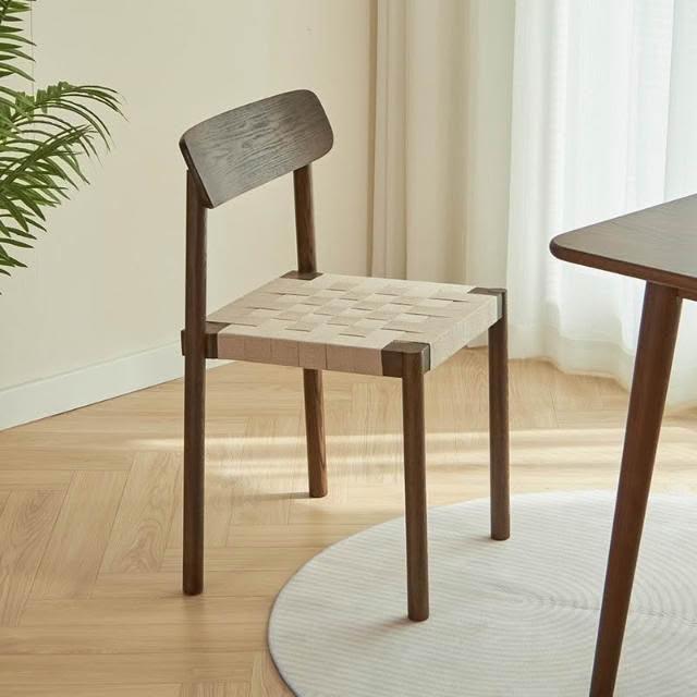 侘寂風實木繩編餐椅原木風設計師休閑椅子北歐日式家用民宿靠背椅