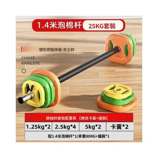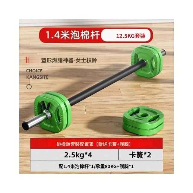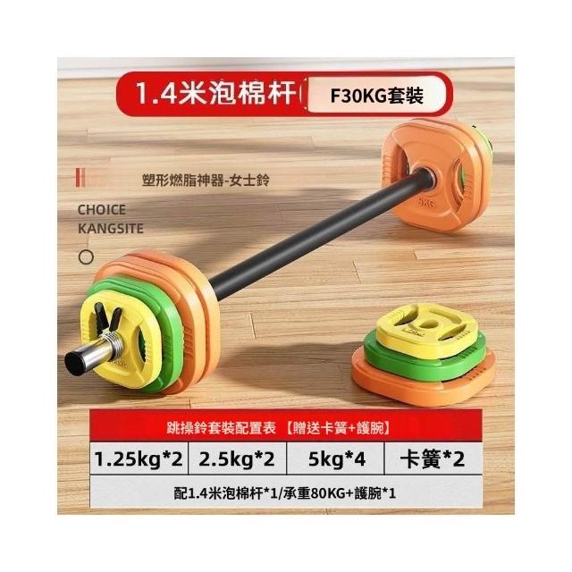 跳操槓鈴套裝女士健身家用深蹲桿健身房扛鈴彩色包膠手抓小槓鈴片