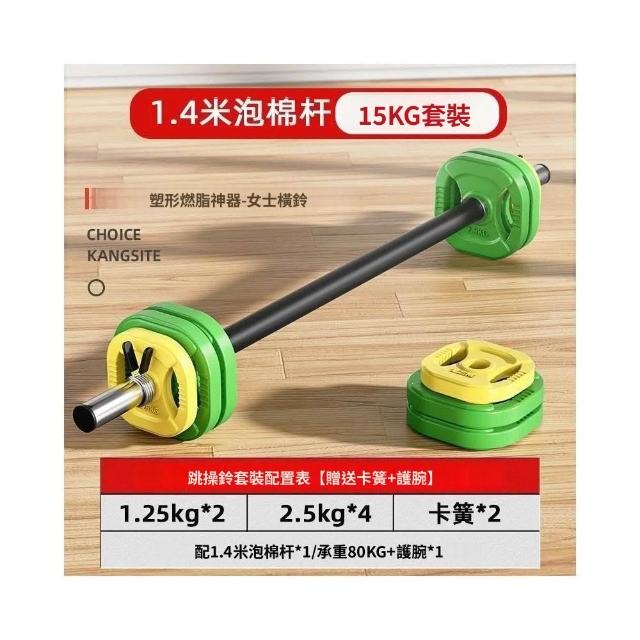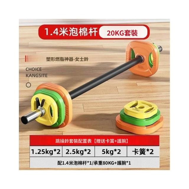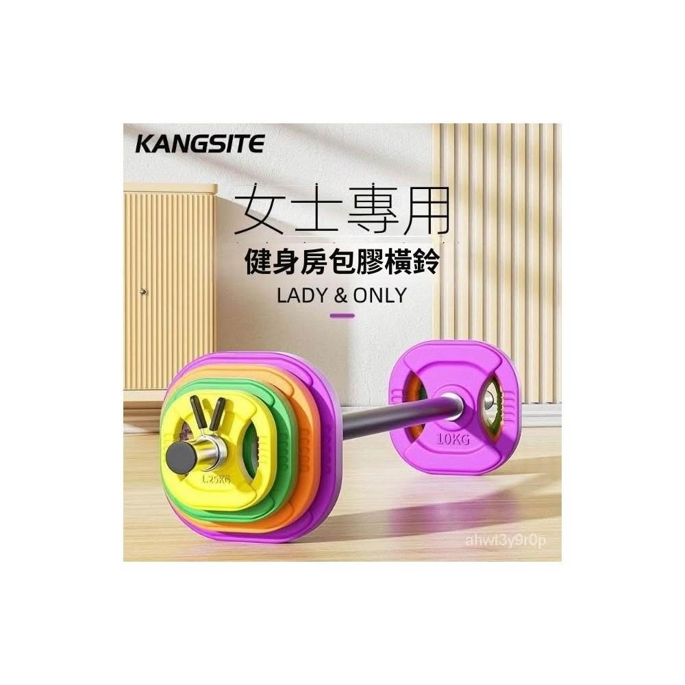 跳操槓鈴套裝女士健身家用深蹲桿健身房扛鈴彩色包膠手抓小槓鈴片