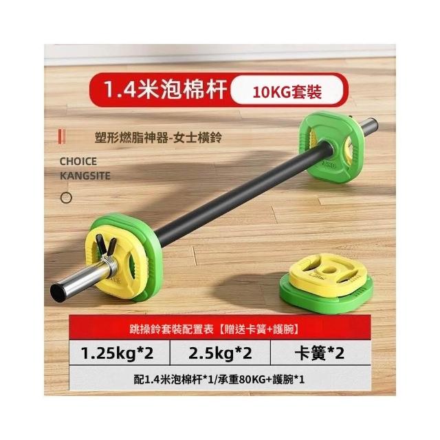 跳操槓鈴套裝女士健身家用深蹲桿健身房扛鈴彩色包膠手抓小槓鈴片