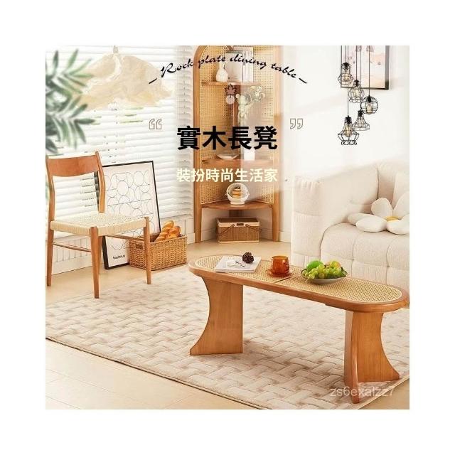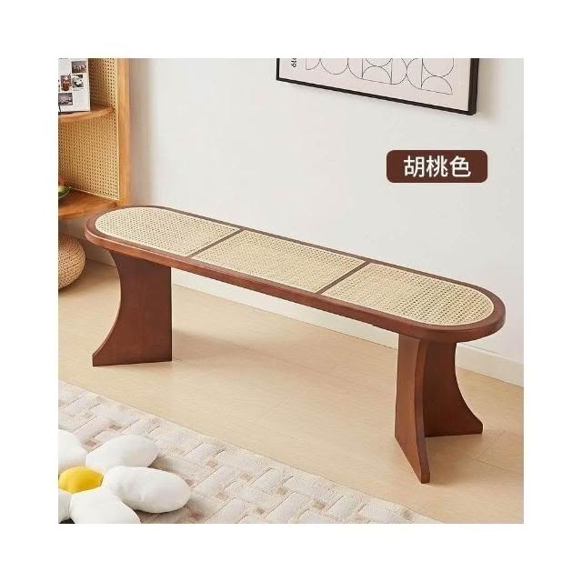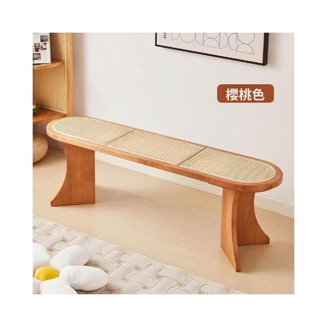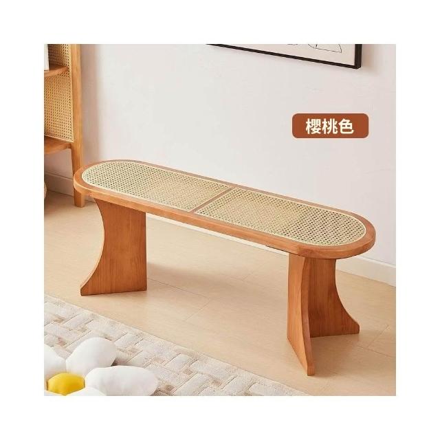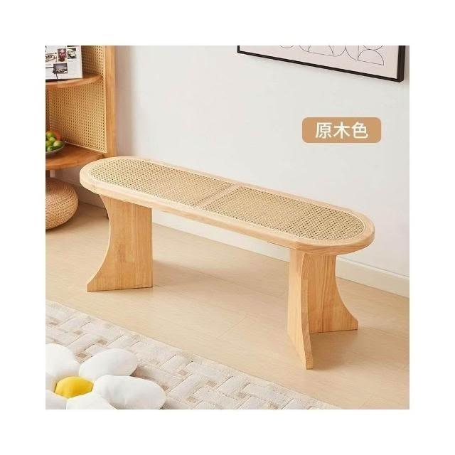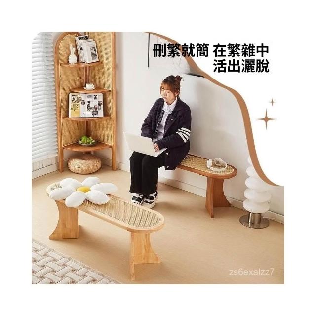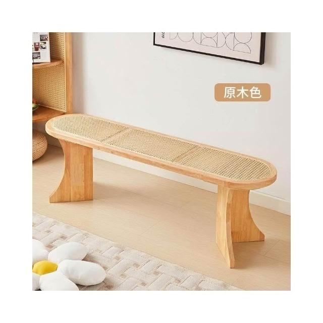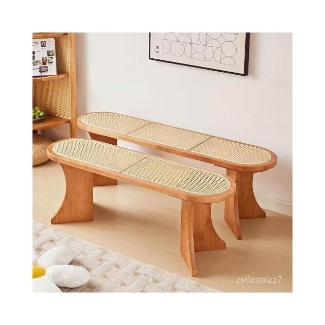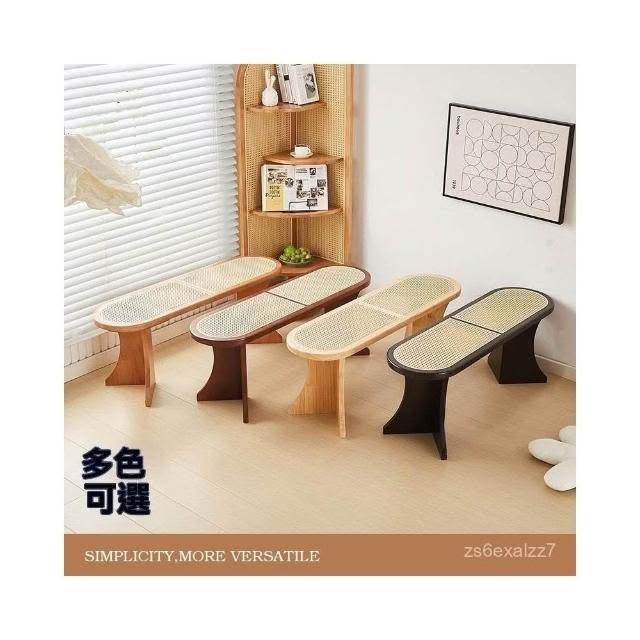 藤編實木長條凳 北歐詫寂風橢圓床尾換鞋凳現代簡約中古風傢用凳子 藤編長椅 床尾凳 穿鞋凳 長條凳 凳子