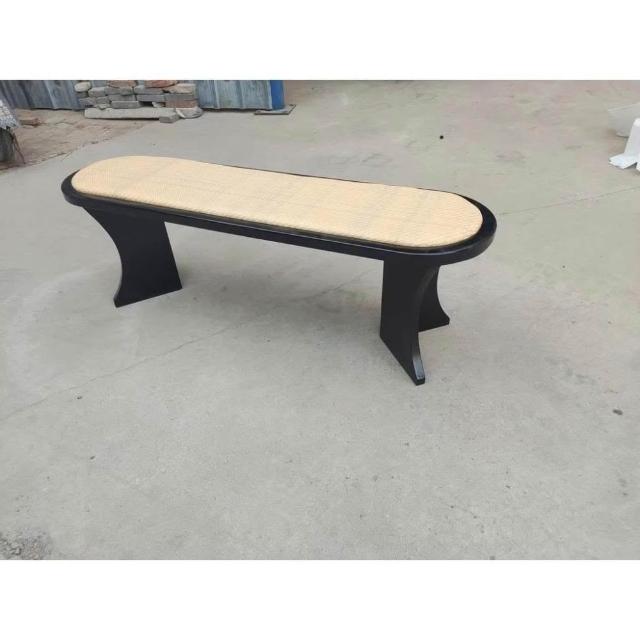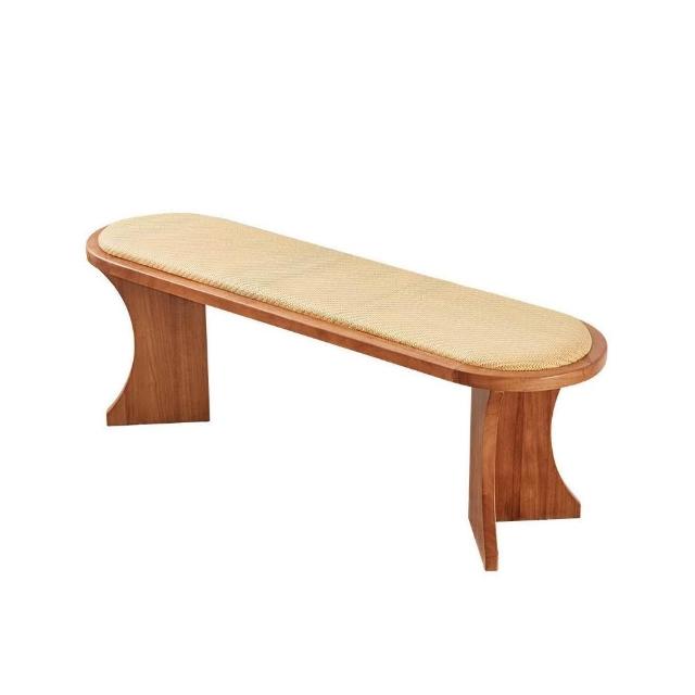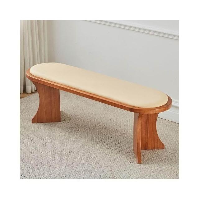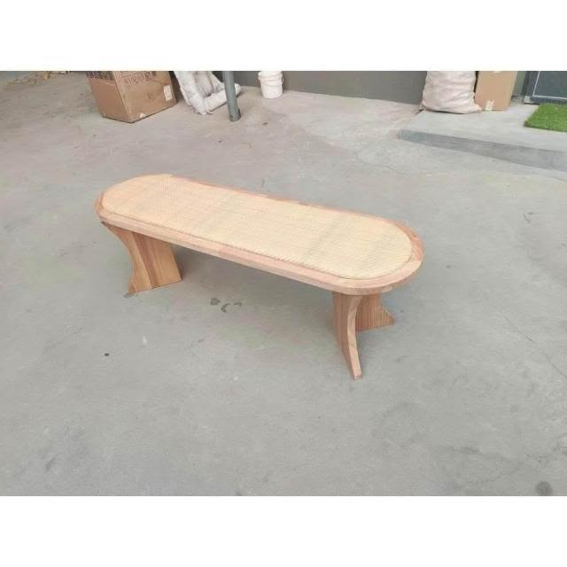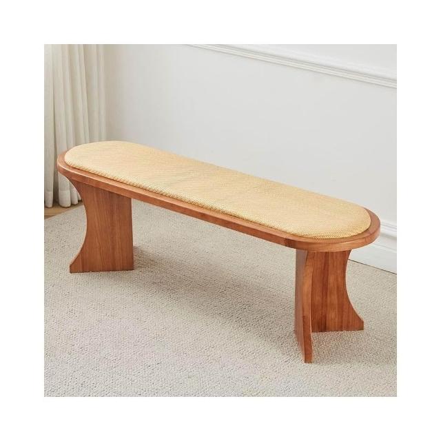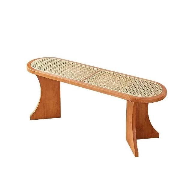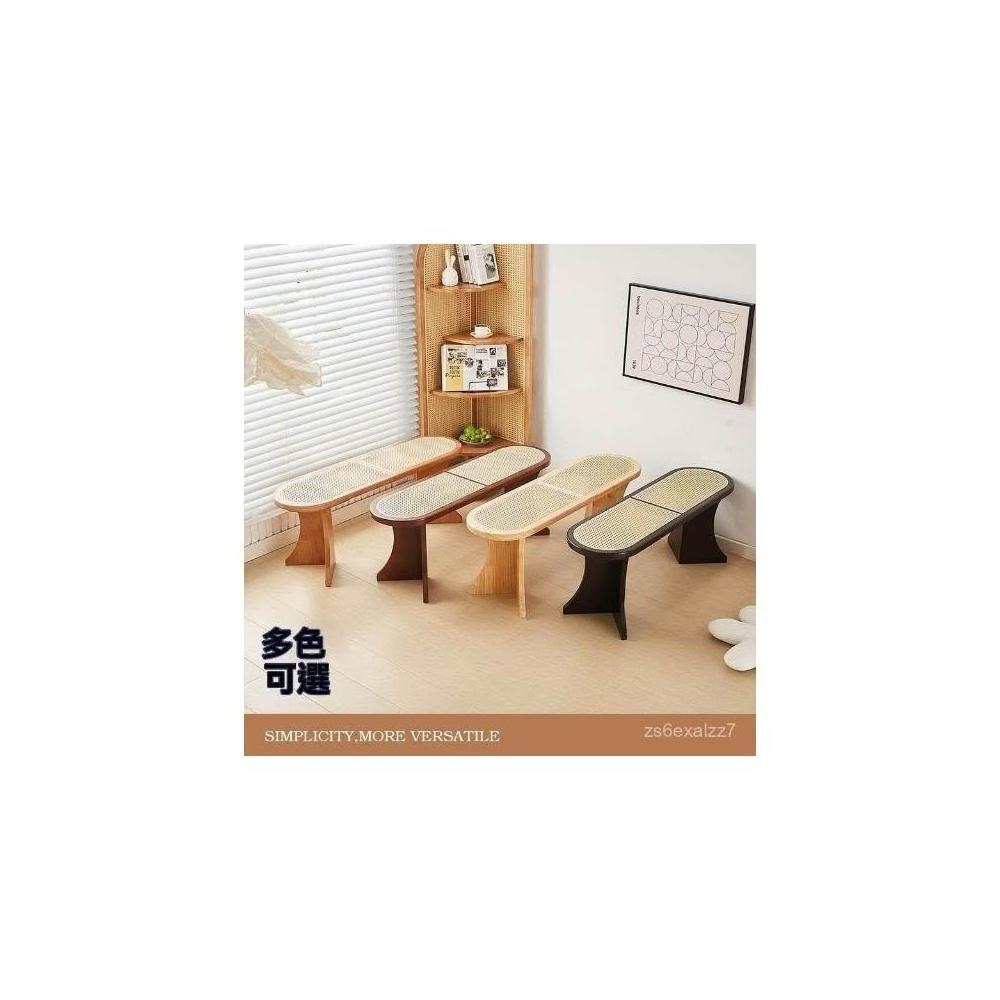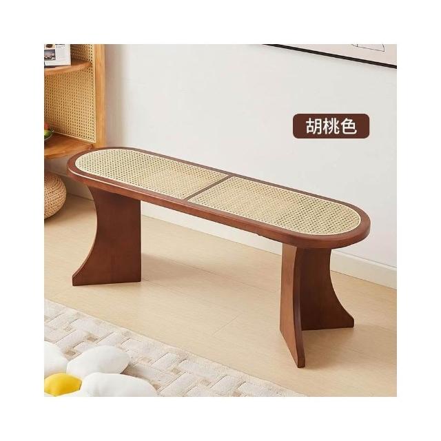 藤編實木長條凳 北歐詫寂風橢圓床尾換鞋凳現代簡約中古風傢用凳子 藤編長椅 床尾凳 穿鞋凳 長條凳 凳子