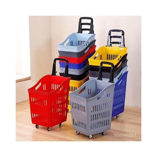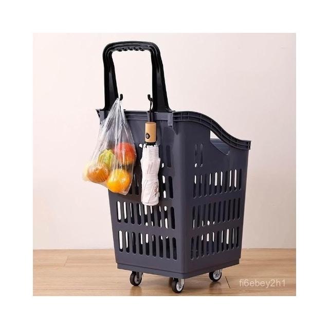 商場超市購物籃手提籃塑料籃子拉桿帶輪大加厚買菜筐購物車小推車