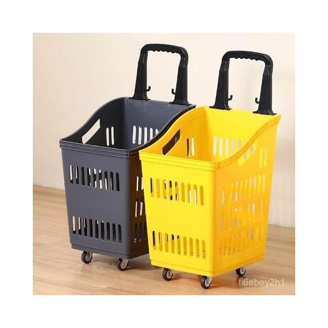 商場超市購物籃手提籃塑料籃子拉桿帶輪大加厚買菜筐購物車小推車