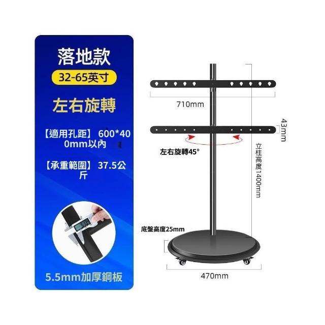 移動免打孔落地電視支架高低陞降適用小米海信TCL電視32-65英寸 置物架 電視機支架 螢幕支架 電視移動架 落地電視架