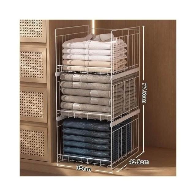 #衣櫃拉籃抽屜式金屬網格分層收納筐臥室櫃內維拉滑軌儲物置物架子