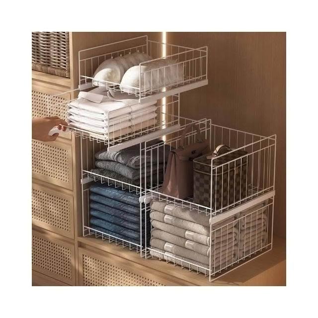 #衣櫃拉籃抽屜式金屬網格分層收納筐臥室櫃內維拉滑軌儲物置物架子