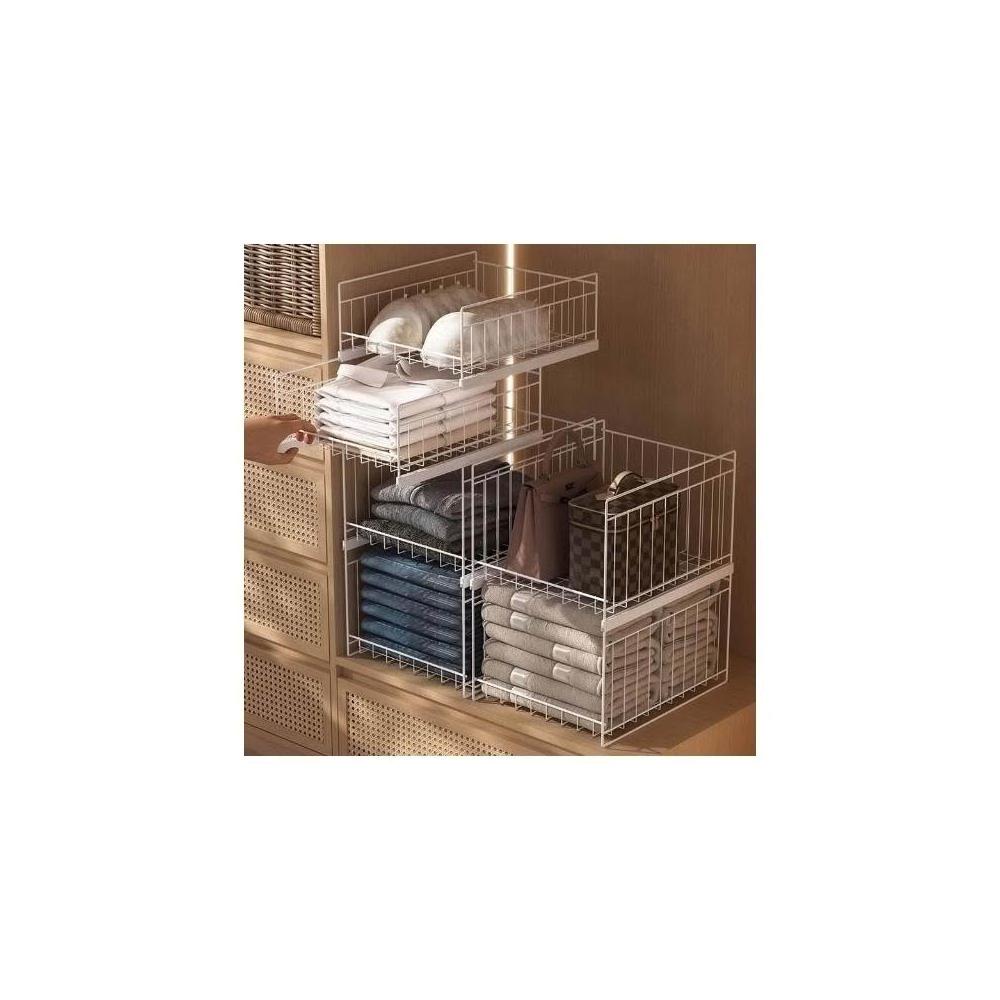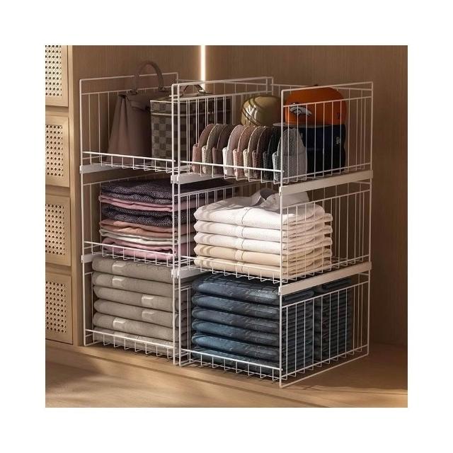 #衣櫃拉籃抽屜式金屬網格分層收納筐臥室櫃內維拉滑軌儲物置物架子