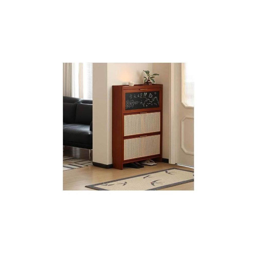 超薄鞋柜 藤編鞋柜 20公分極窄鞋櫃 高級黃楊木鞋櫃 收納櫃 免組裝實木家用門口玄關櫃小戶型翻斗入戶超薄鞋架