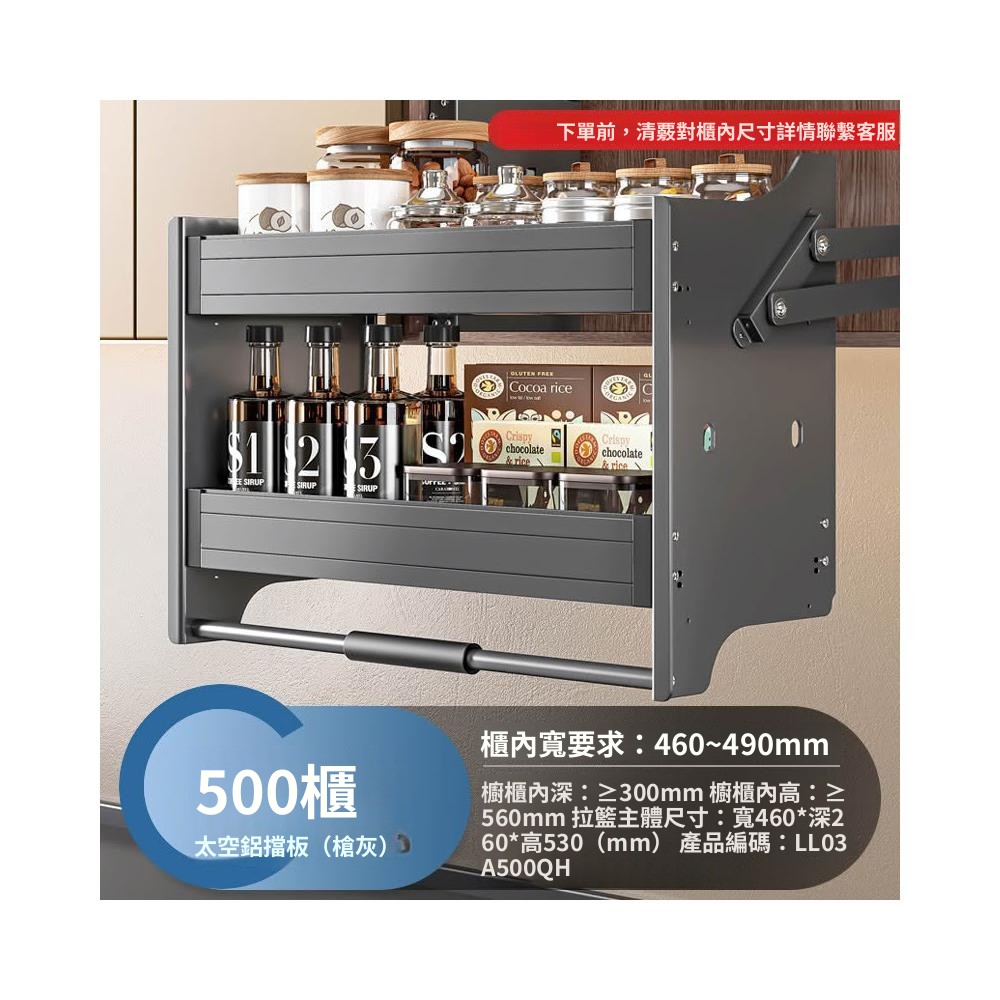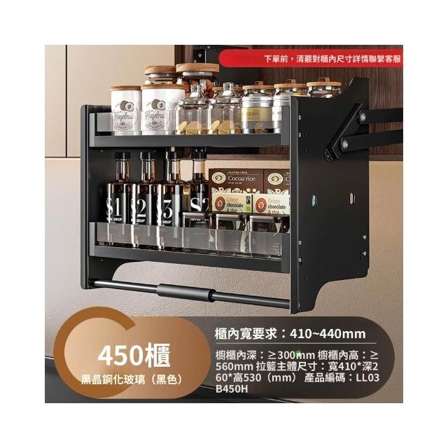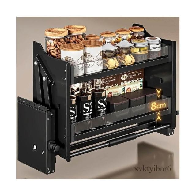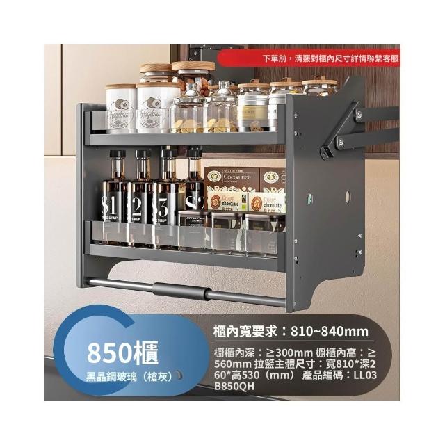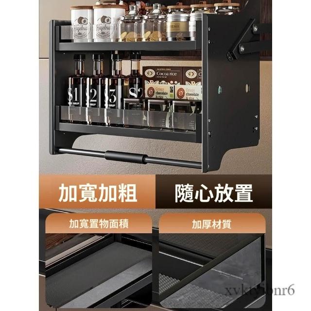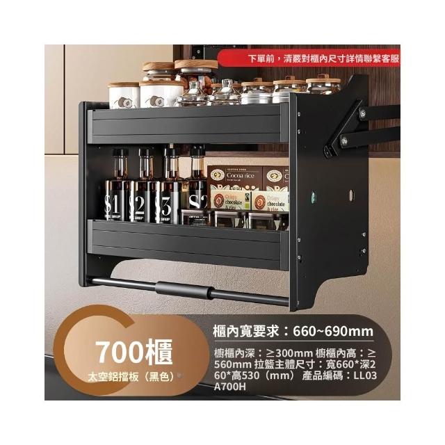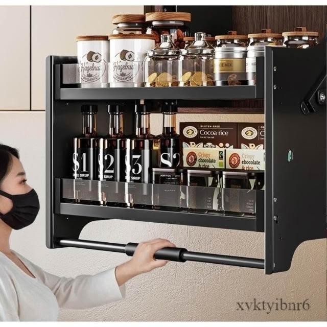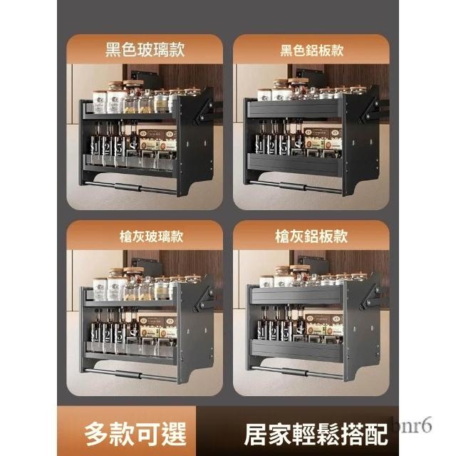 新款廚房吊櫃升降拉籃 櫥柜上下緩衝高櫃開門式調味籃 太空鋁下拉式廚櫃調料架收納架 櫥櫃鑲入式置物架