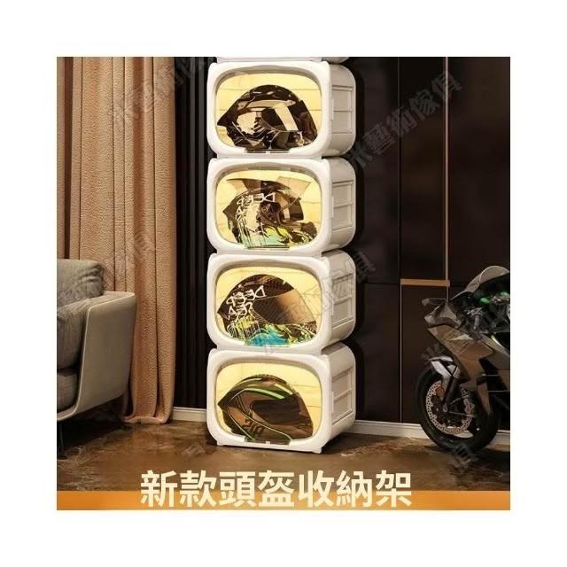 頭盔收納架收納櫃 安全帽收納 亞克力收納架 多功能透明收納櫃頭盔收納架子摩托車帽子收納櫃家用放置盒頭盔衣服挂鈎架落地收納