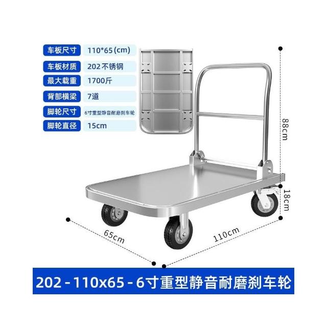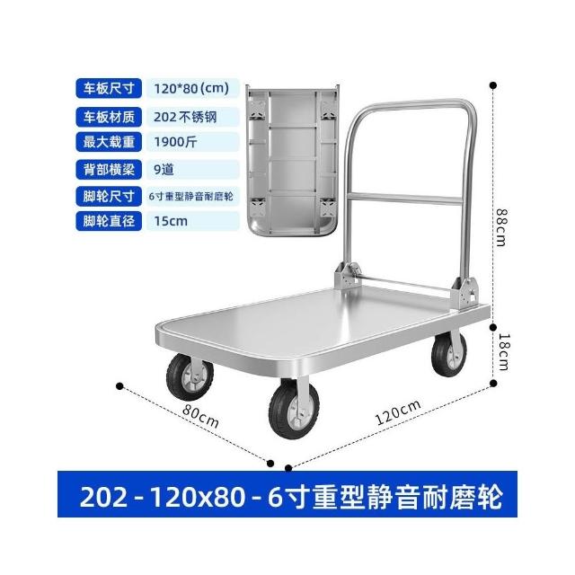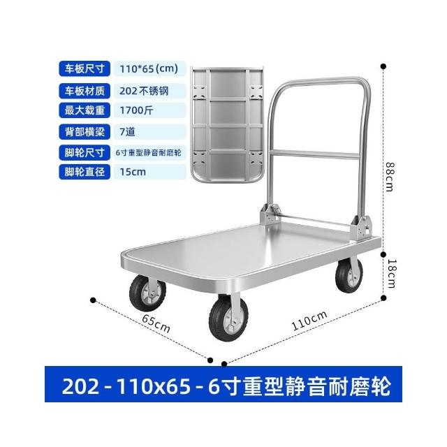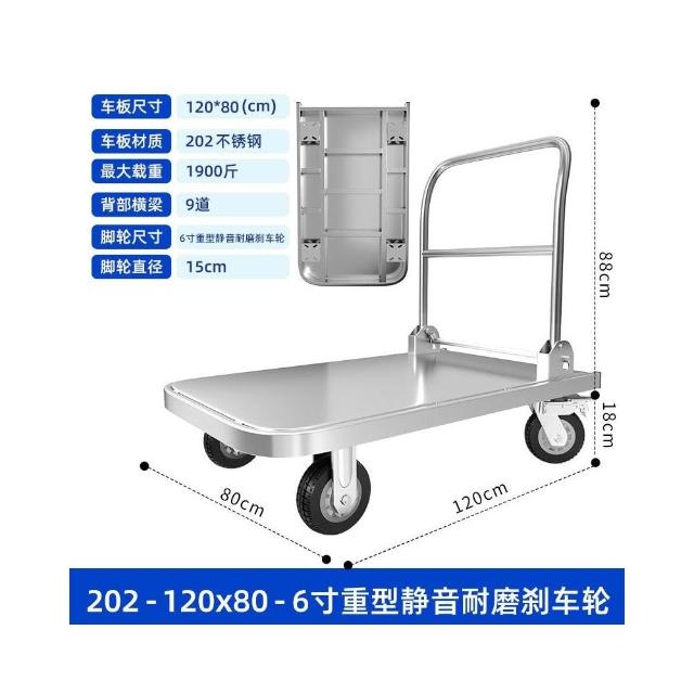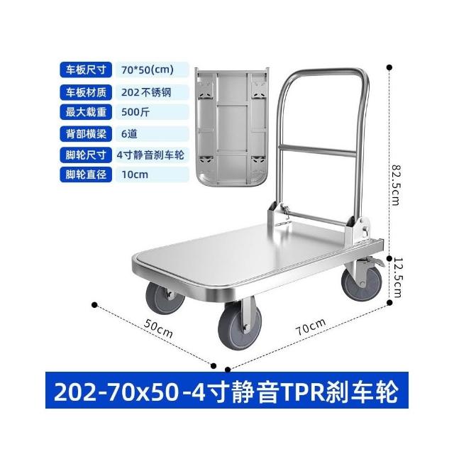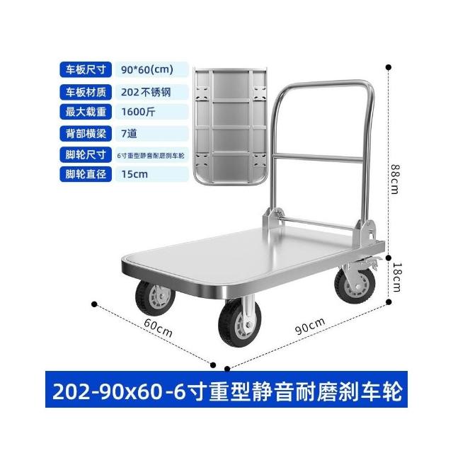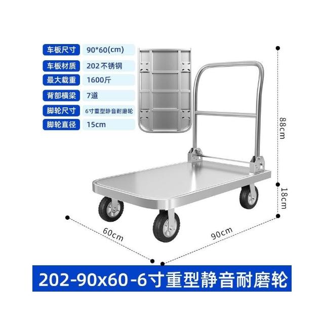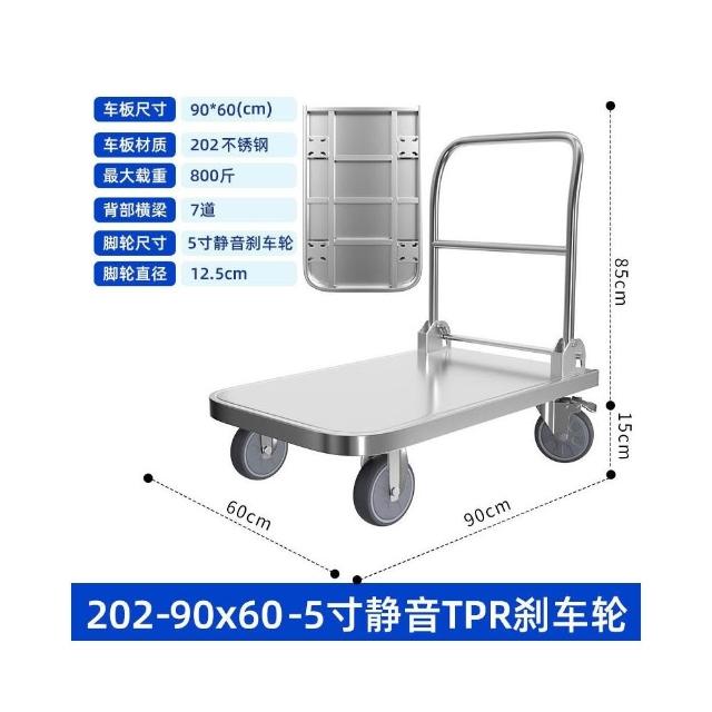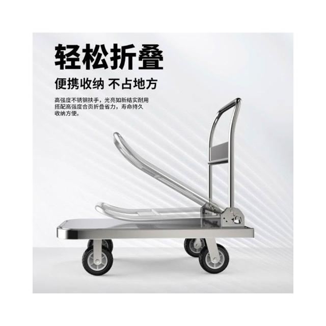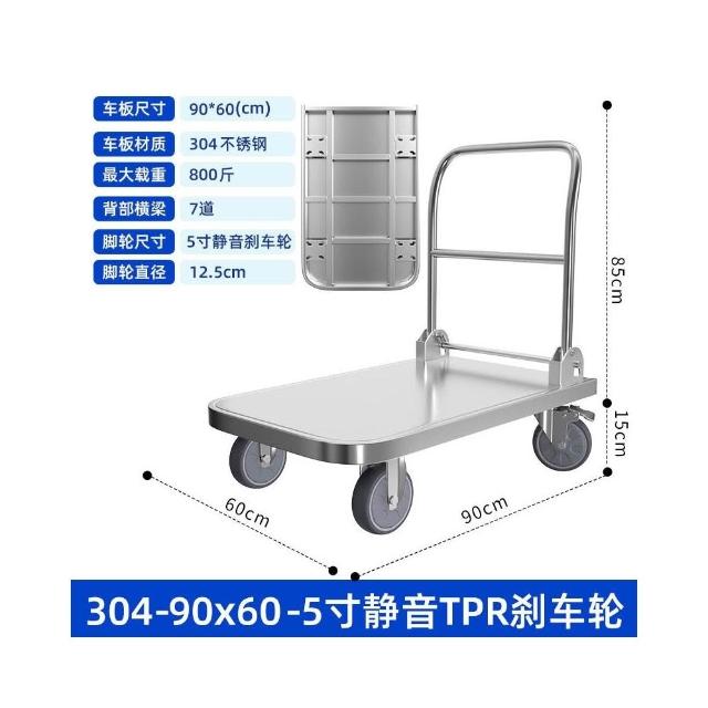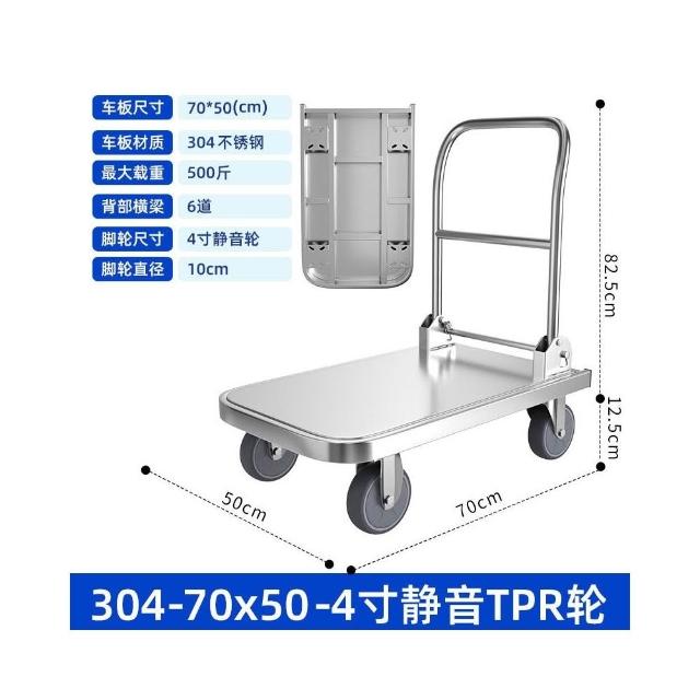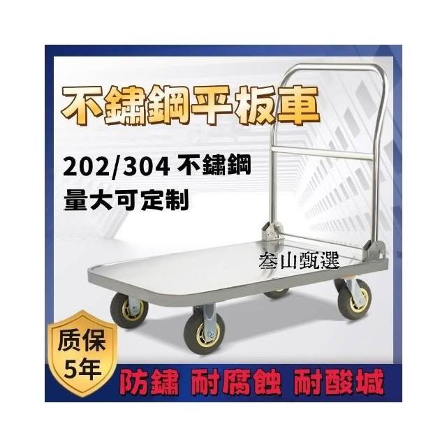 304不銹鋼手推車 平板車 搬運車 推貨車 靜音折疊水產海鮮拉貨車拖車