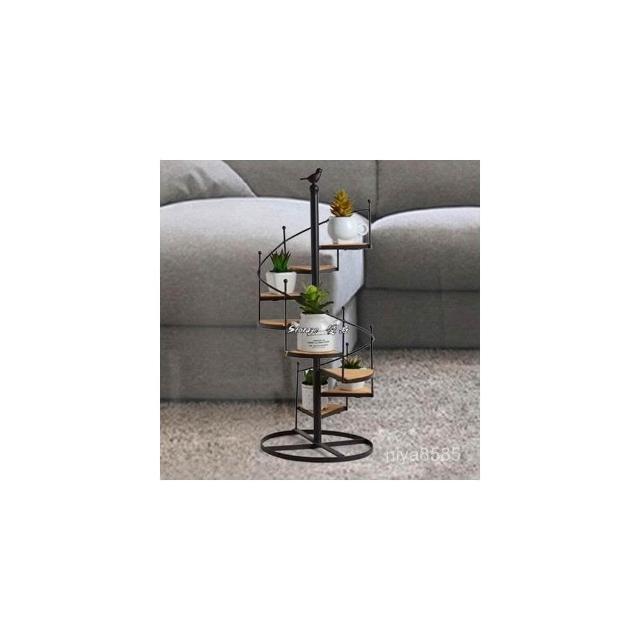 歐美式鐵藝複古客廳陽臺旋轉多層落地樓梯花架實木特價置物架 展示架子 落地置物架 收納架 展示架子