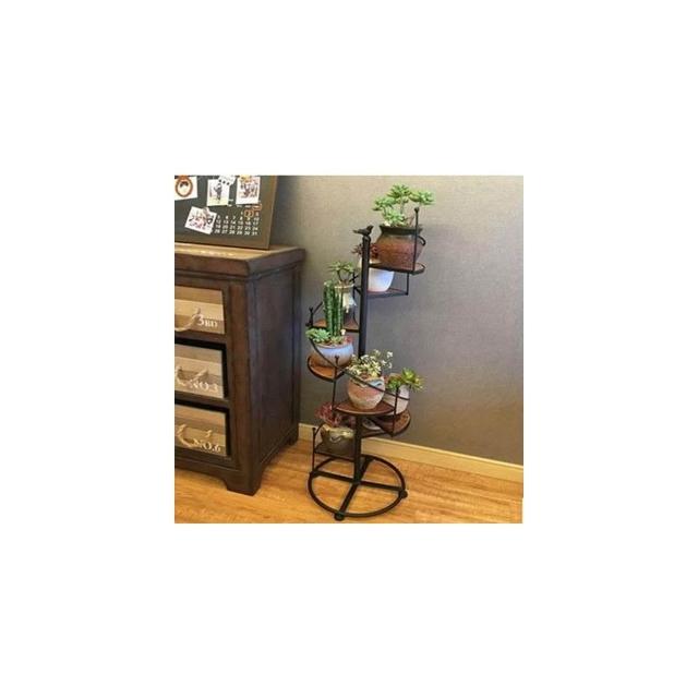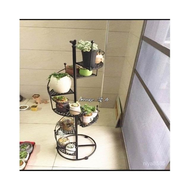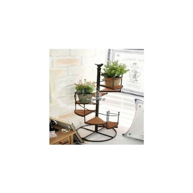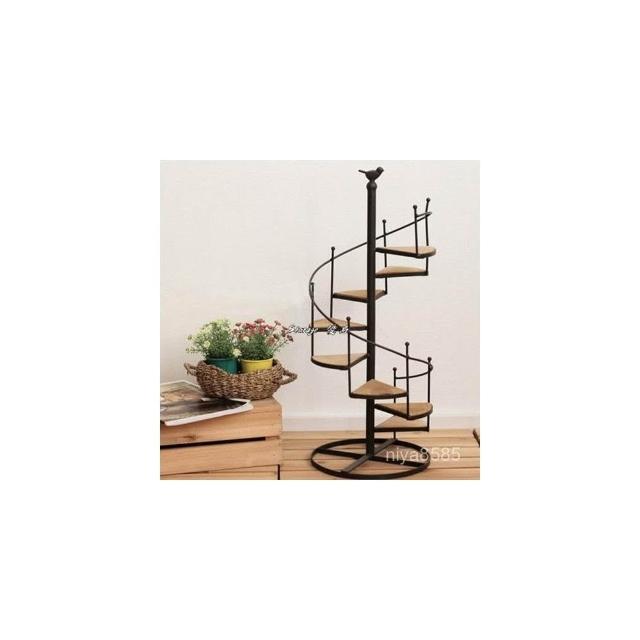 歐美式鐵藝複古客廳陽臺旋轉多層落地樓梯花架實木特價置物架 展示架子 落地置物架 收納架 展示架子