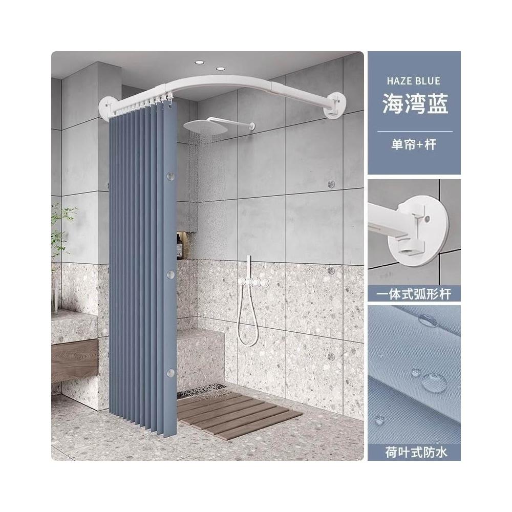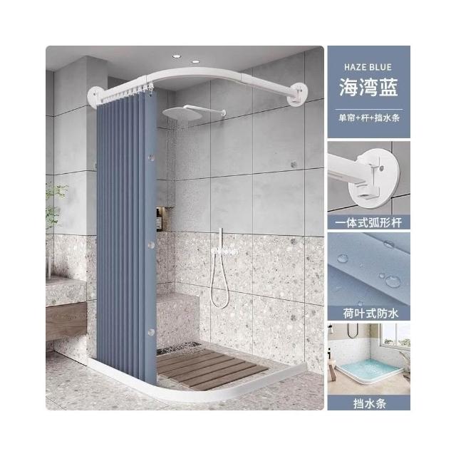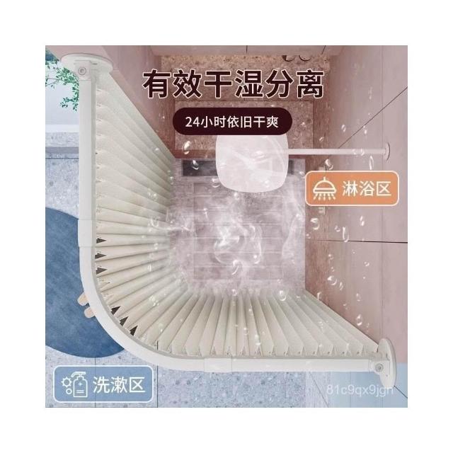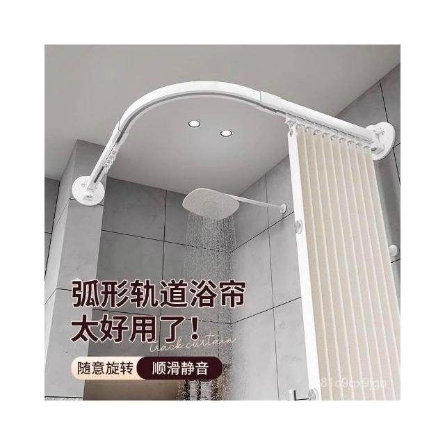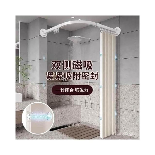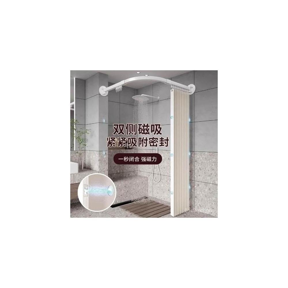 新款上市磁吸折疊浴簾 門簾 浴室淋浴房家用弧形軌道磁吸折疊簾套裝鋁閤金免孔L型弧形桿軌道 防水浴室簾 掛簾
