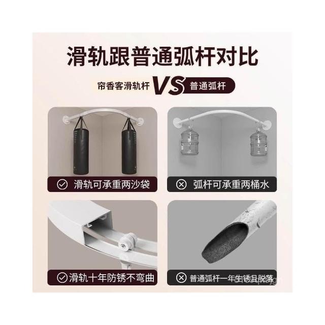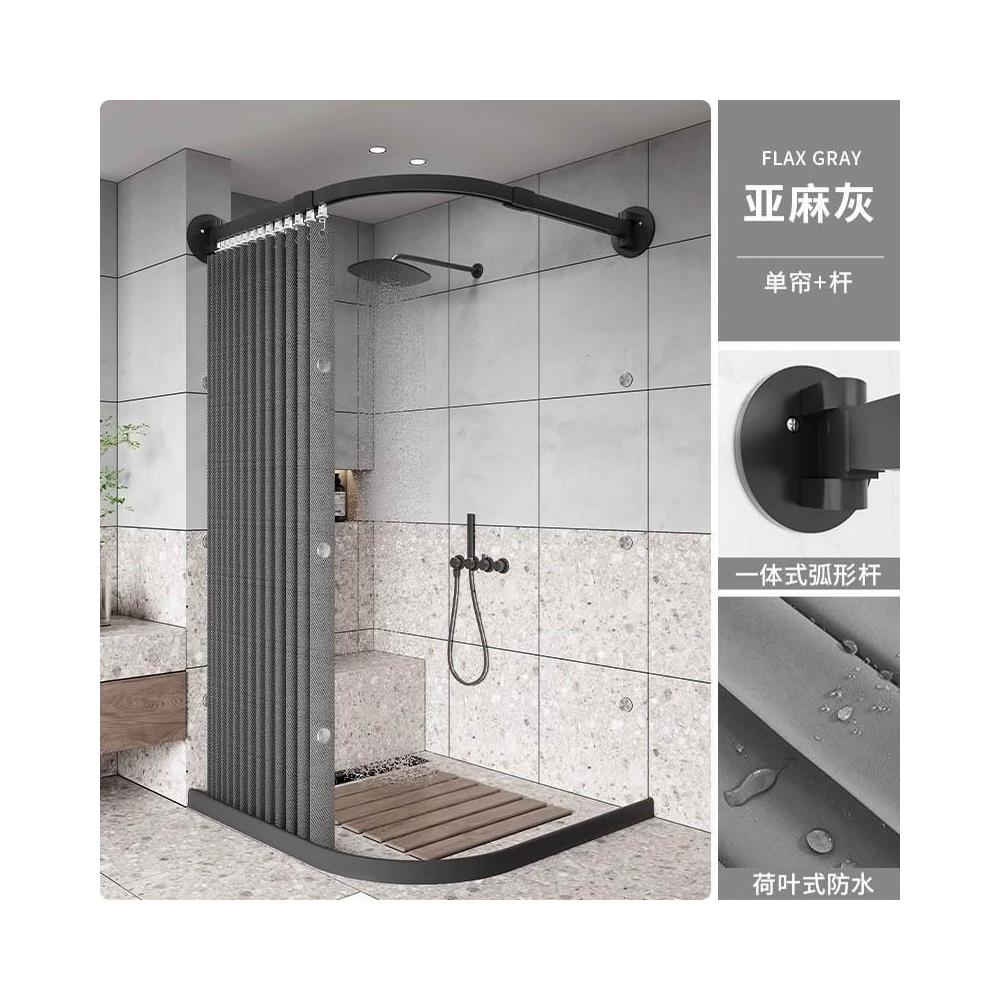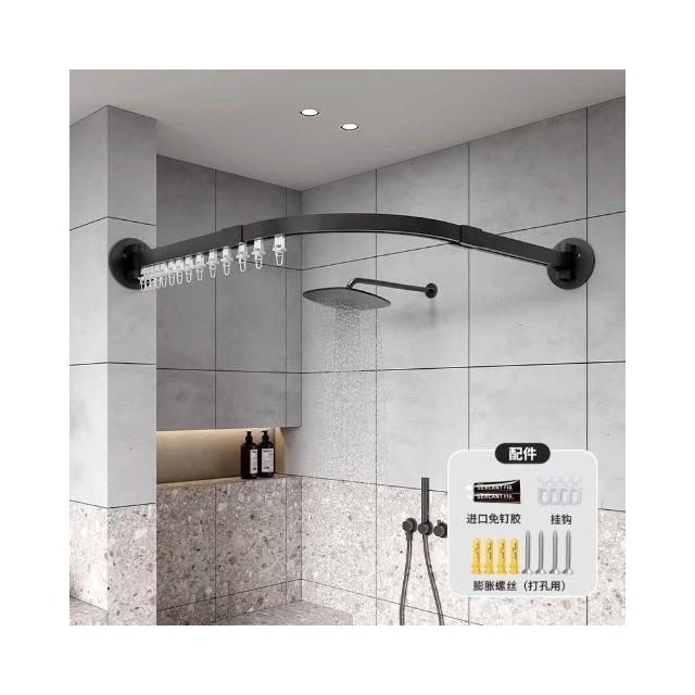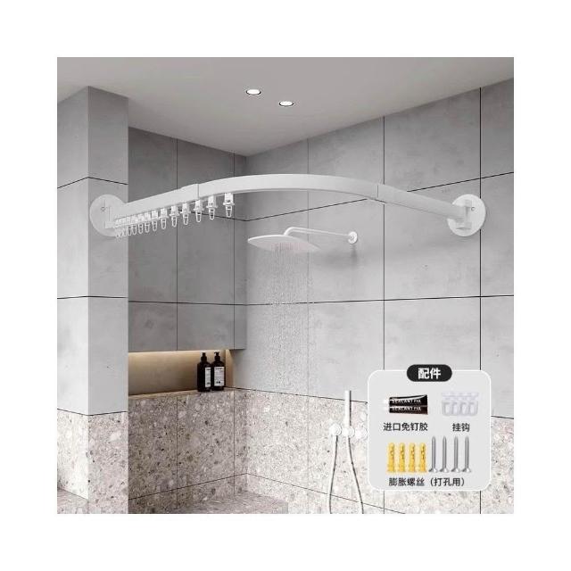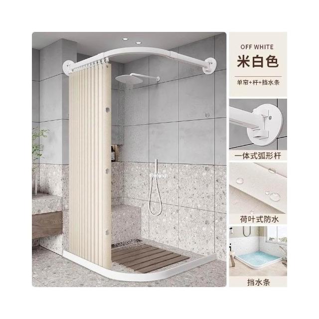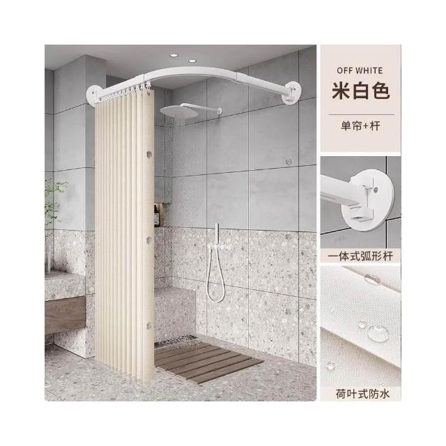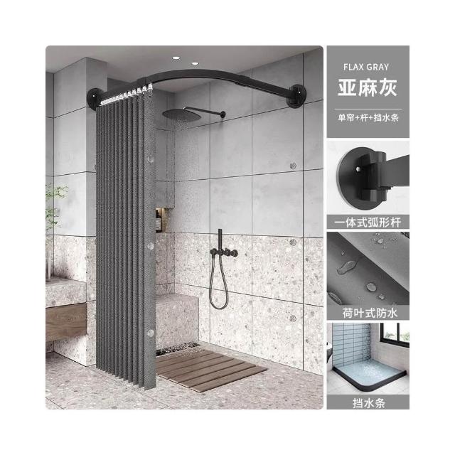 新款上市磁吸折疊浴簾 門簾 浴室淋浴房家用弧形軌道磁吸折疊簾套裝鋁閤金免孔L型弧形桿軌道 防水浴室簾 掛簾