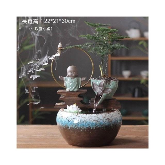 陶瓷禪意 招財流水盆 流水聚寶盆 倒流香 香爐 流水擺件 招財擺飾 風水招財流水組 風水擺件 開幕送禮