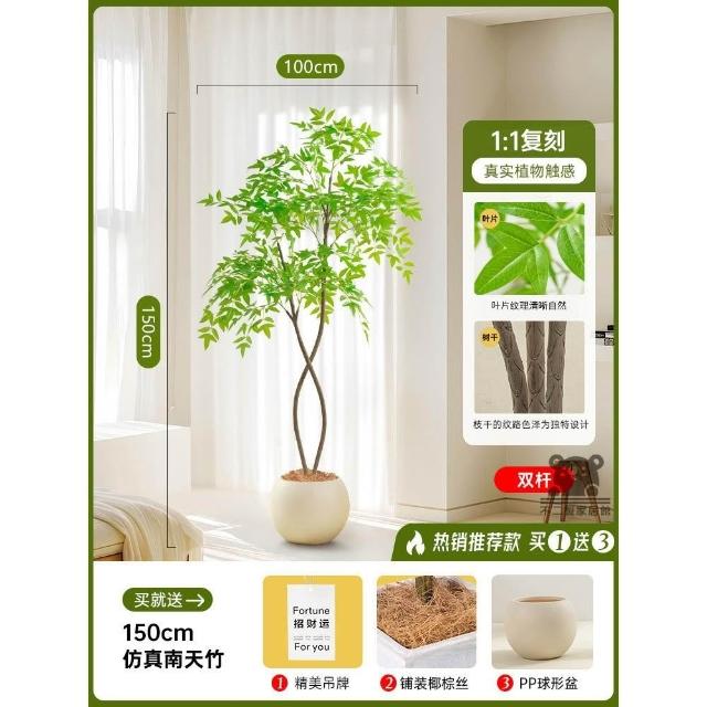 仿真南天竹 宅配 仿真植物 室內大型仿生綠植擺件 客廳裝飾樹 落地盆栽 高端輕奢客廳假植物 仿真大型盆栽
