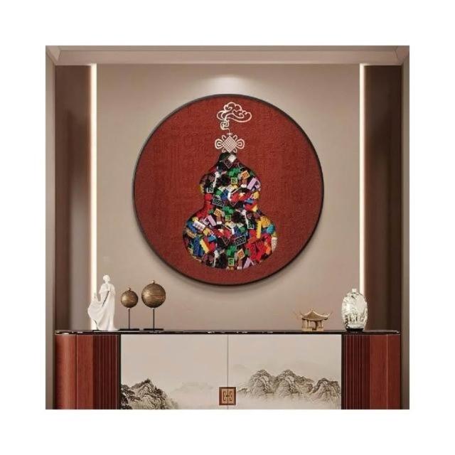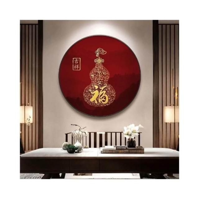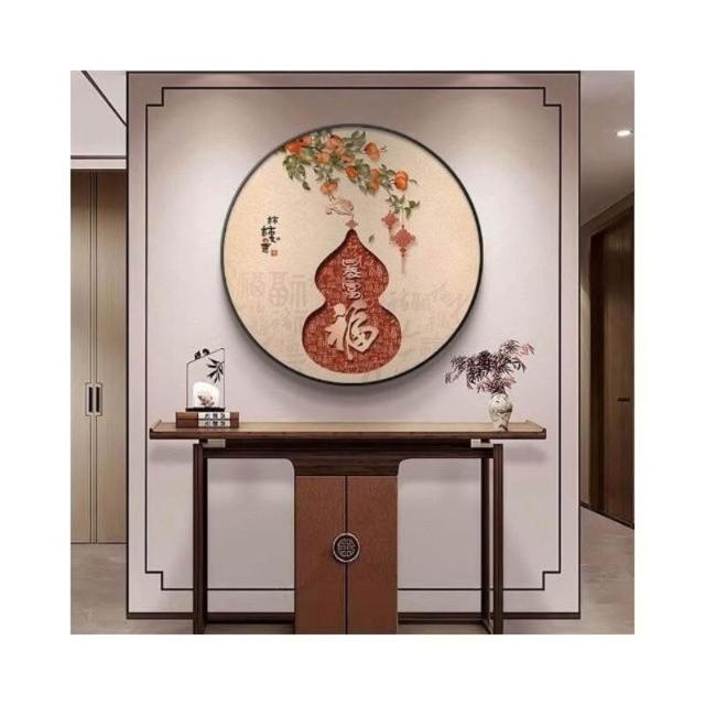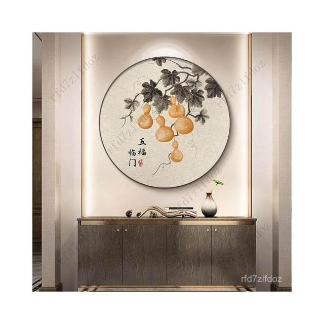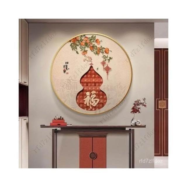 可定製 柿柿如意新中式玄關裝飾畫圆形百福圆形茶室裝飾畫掛畫高級感壁畫 新中式餐廳裝飾畫 晶瓷畫 招財風水畫 喬遷 新居