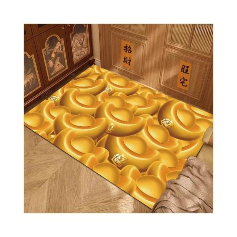 可定製 旺宅招財純黃色地墊入戶門金黃地毯銅錢招財進寶腳墊朝西對門化解 進門地毯入戶地墊門口地墊 防水防油防滑地墊招財地