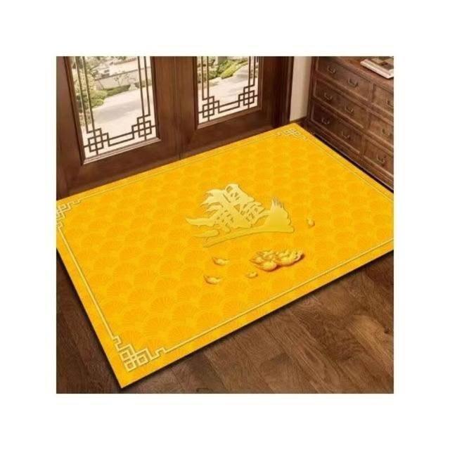 可定製 旺宅招財純黃色地墊入戶門金黃地毯銅錢招財進寶腳墊朝西對門化解 進門地毯入戶地墊門口地墊 防水防油防滑地墊招財地