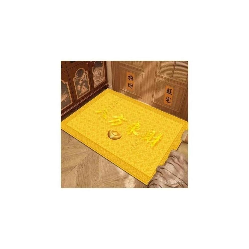 可定製 旺宅招財純黃色地墊入戶門金黃地毯銅錢招財進寶腳墊朝西對門化解 進門地毯入戶地墊門口地墊 防水防油防滑地墊招財地