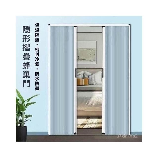 定制商品謹慎下定 工廠直銷 隱形蜂巢伸縮折疊推拉門陽臺打孔客廳臥室廚房隔斷門衛生間 隔斷門 推拉式 免打洞紗門