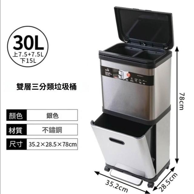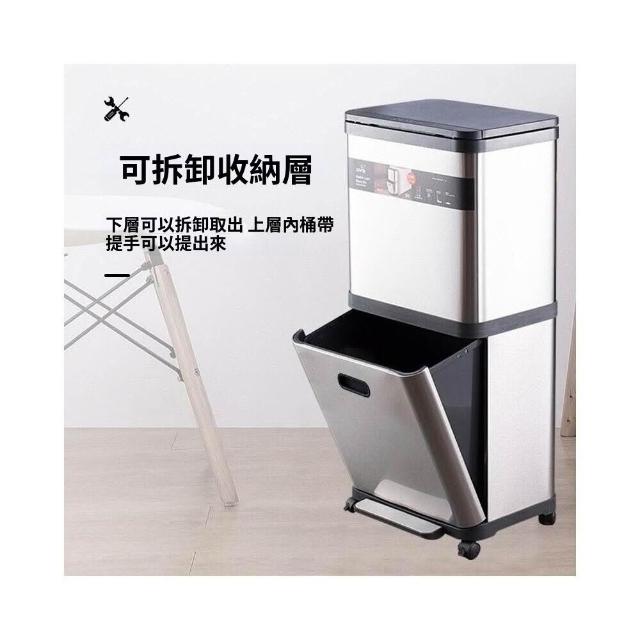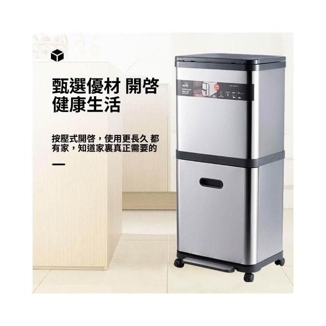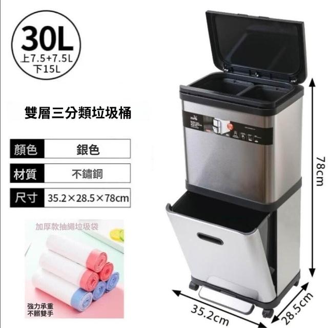 不銹鋼雙層垃圾桶帶滑輪家用閤金高檔廚房分類腳踏免彎腰收納桶
