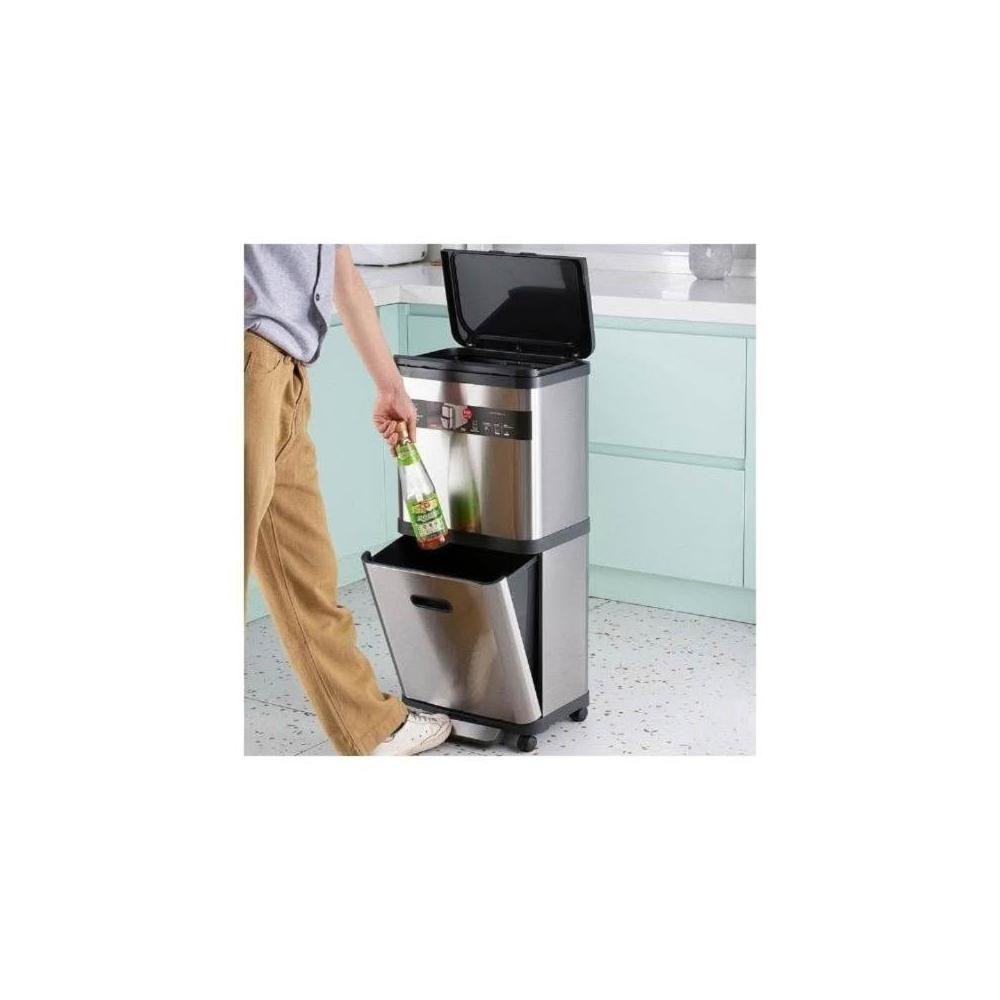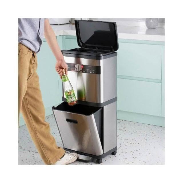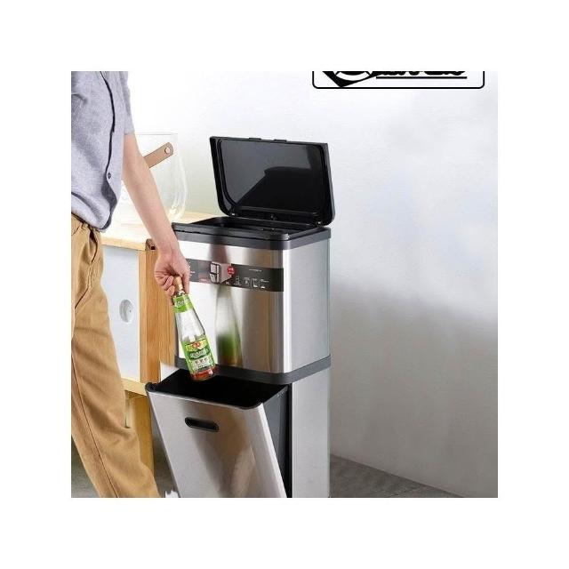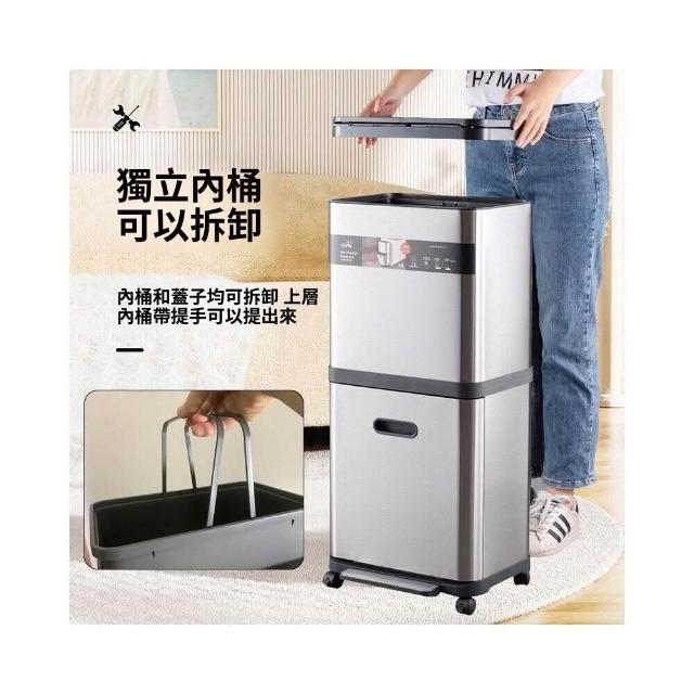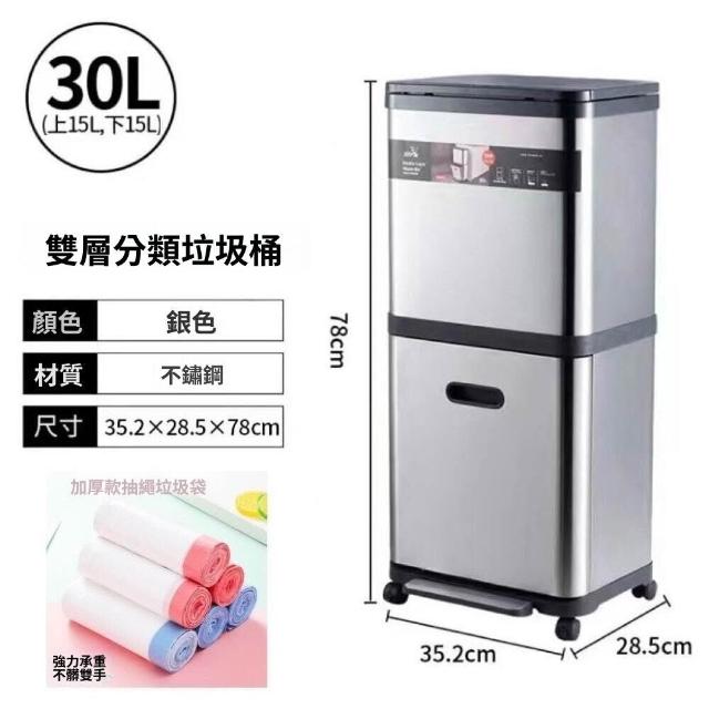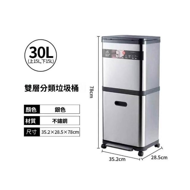 不銹鋼雙層垃圾桶帶滑輪家用閤金高檔廚房分類腳踏免彎腰收納桶