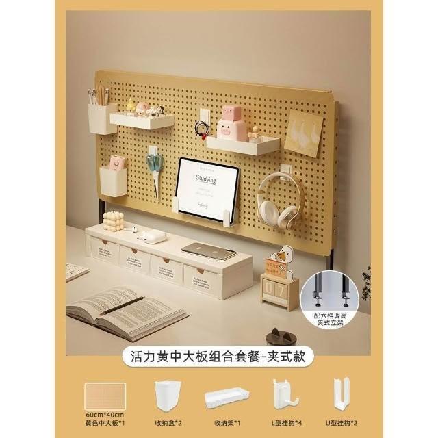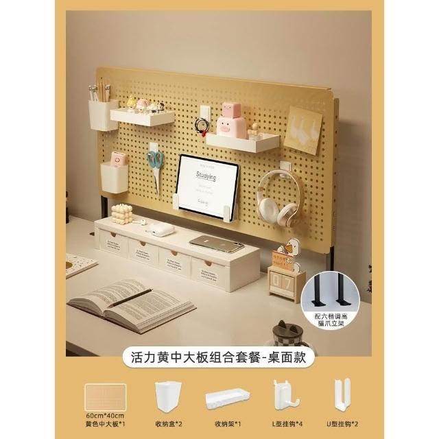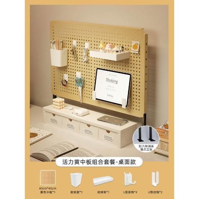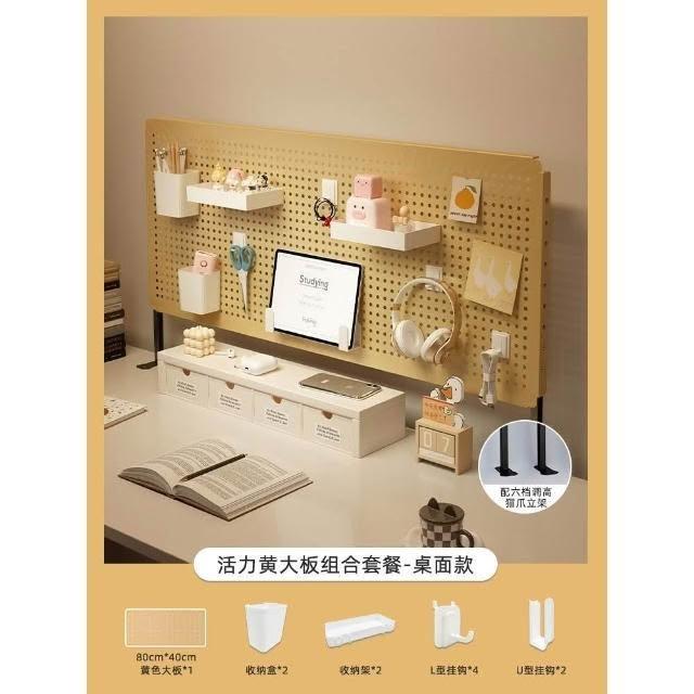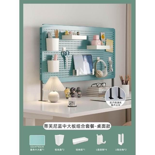 立式桌面洞洞板置物架 金屬鐵藝免打孔收納整理架子 桌上洞洞板儲物架 桌面洞洞板展示架 磁吸洞洞板