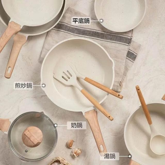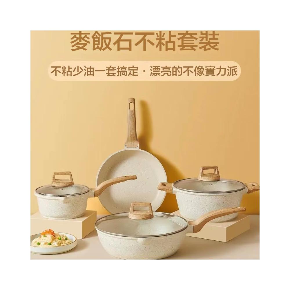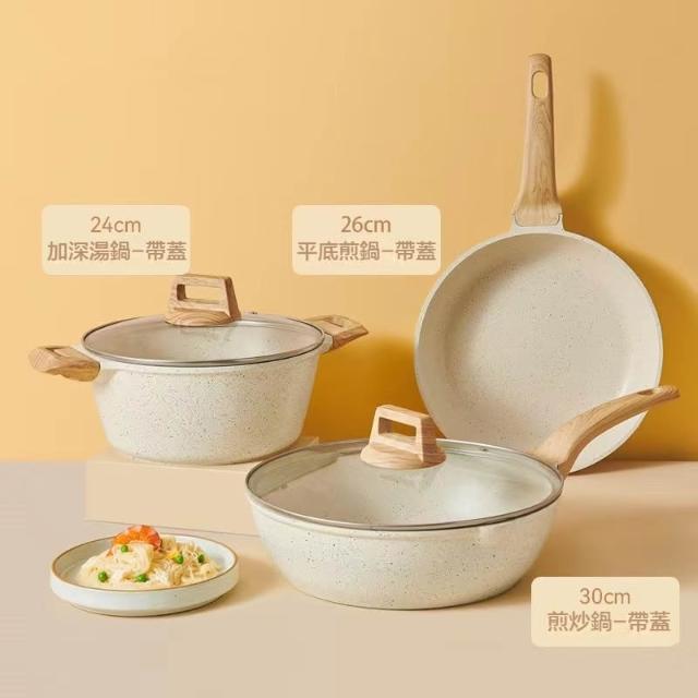 🥇現貨速發🩰麥飯石炒鍋湯鍋煎鍋三件套 不沾鍋 煎炒鍋+平底鍋+泡麵鍋+湯鍋 電磁爐鍋 麥飯石鍋具套裝