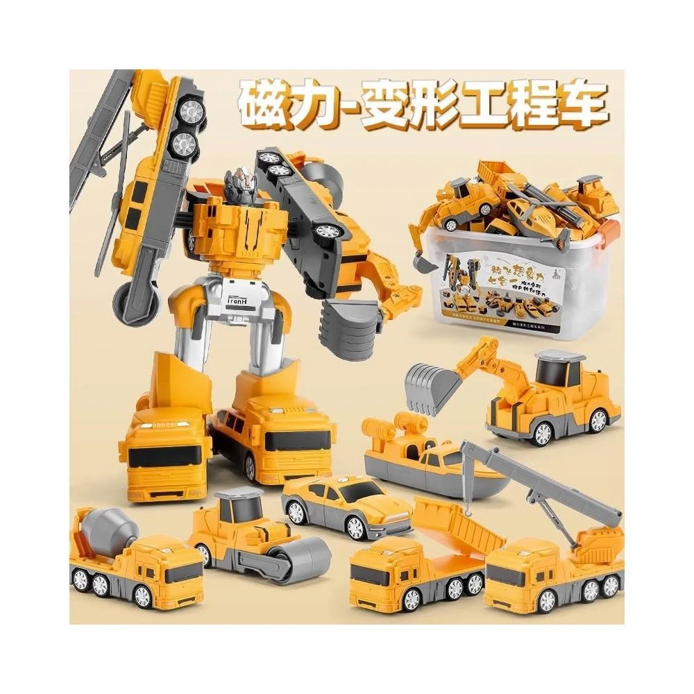 🥇現貨速發🩰兒童磁力拼裝工程車消防軍事百變積木合體變形機器人益智男孩玩具