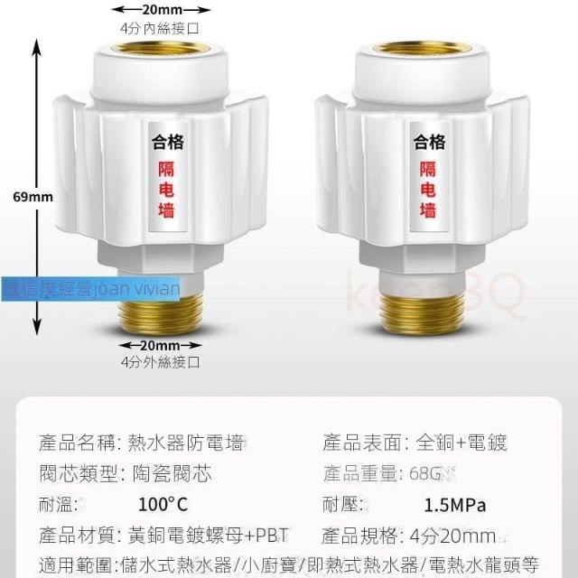 🥇現貨速發🩰家用熱水器隔電墻 銅製熱水器防漏電配件 銅頭 防觸電配件 防電銅頭 通用型 外置熱水器配件