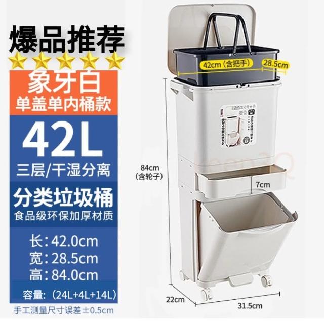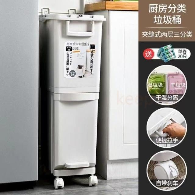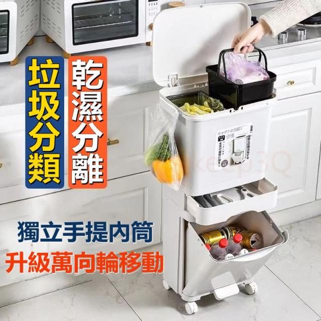 『現貨在台』日式分類垃圾桶 可移動式乾濕分離垃圾桶 自動垃圾桶 廚房分類垃圾桶 雙層大容量家用垃圾桶 帶蓋/防臭垃圾桶