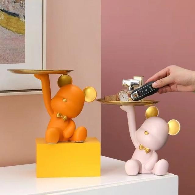 📣YEES!野絲現貨🚀輕奢暴力熊收納架 玄關放鑰匙收納 現代創意客廳裝飾品 托盤擺件 桌面小擺設 暴力熊托盤
