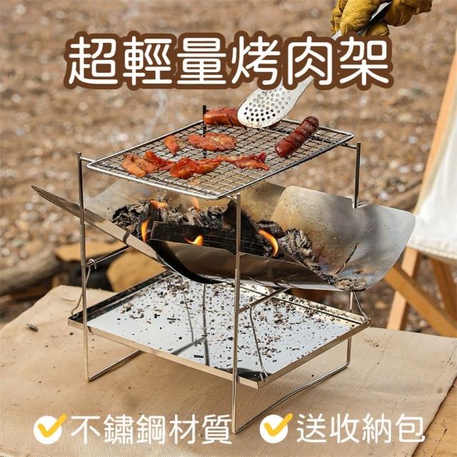 📣YEES!野絲現貨🚀超輕便攜焚火台烤肉爐 烤肉架(附贈接灰盤) 露營折疊燒烤爐 送收納袋 折疊焚火架 戶外不鏽鋼燒烤架